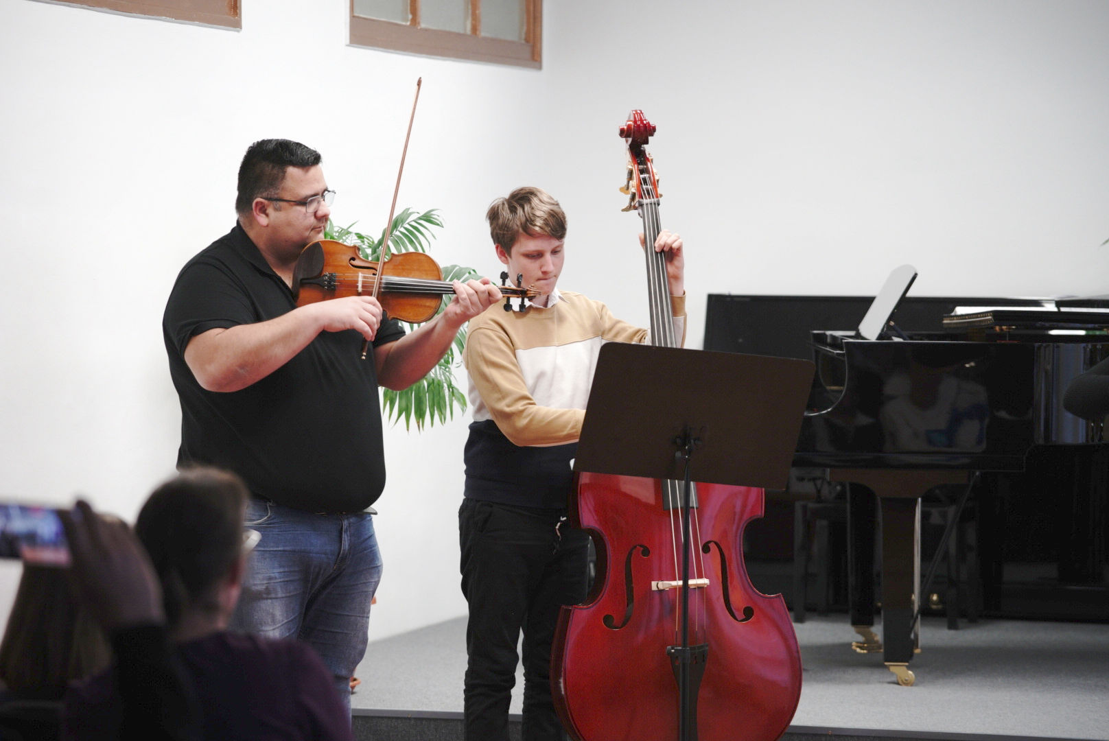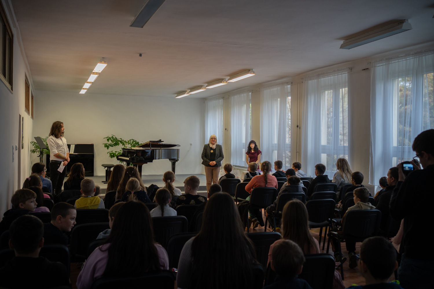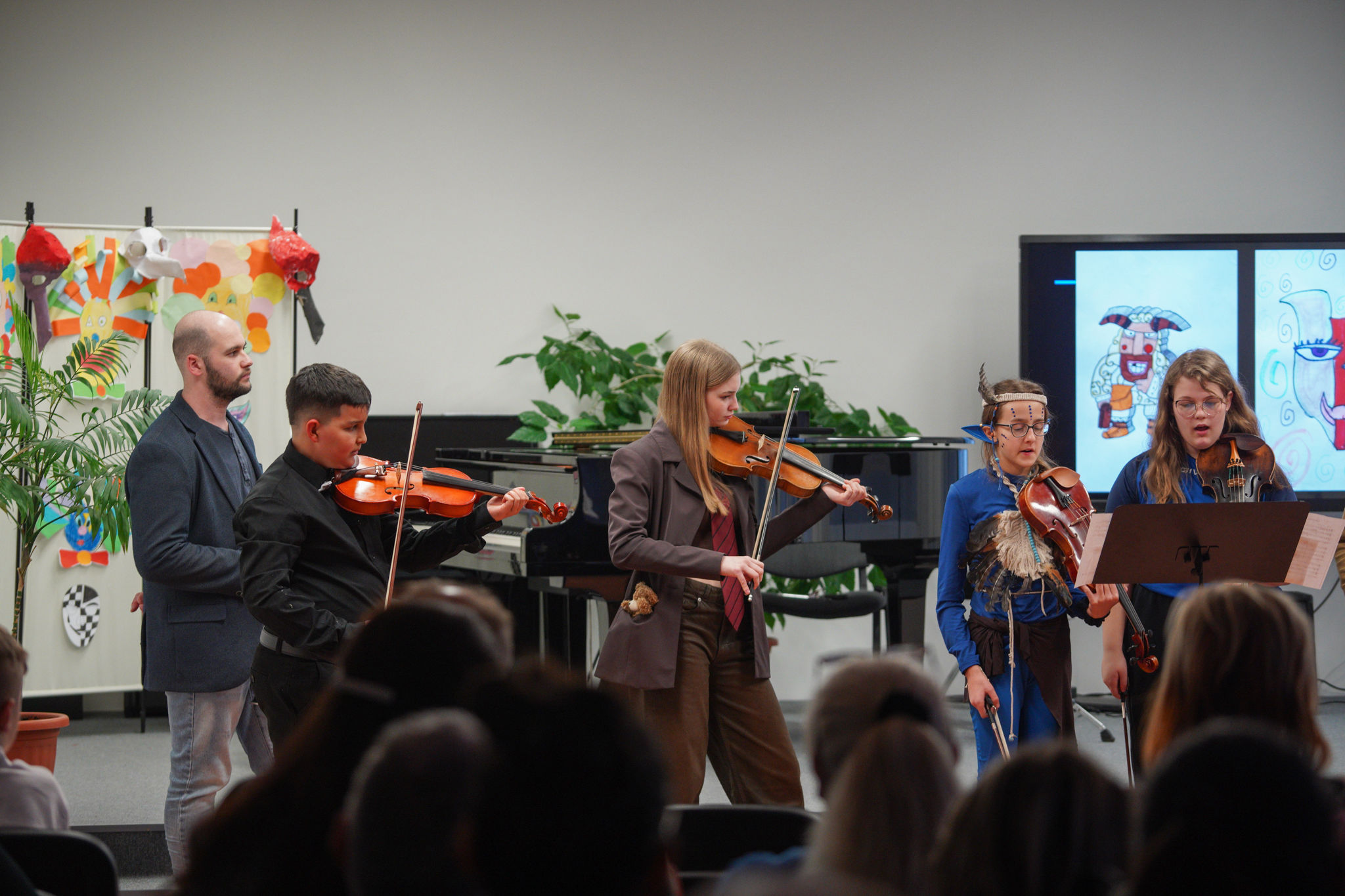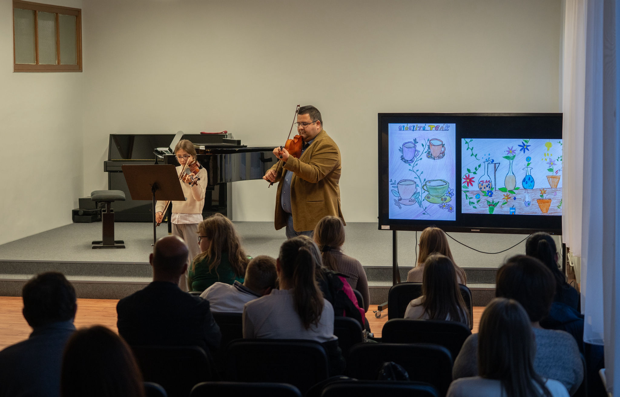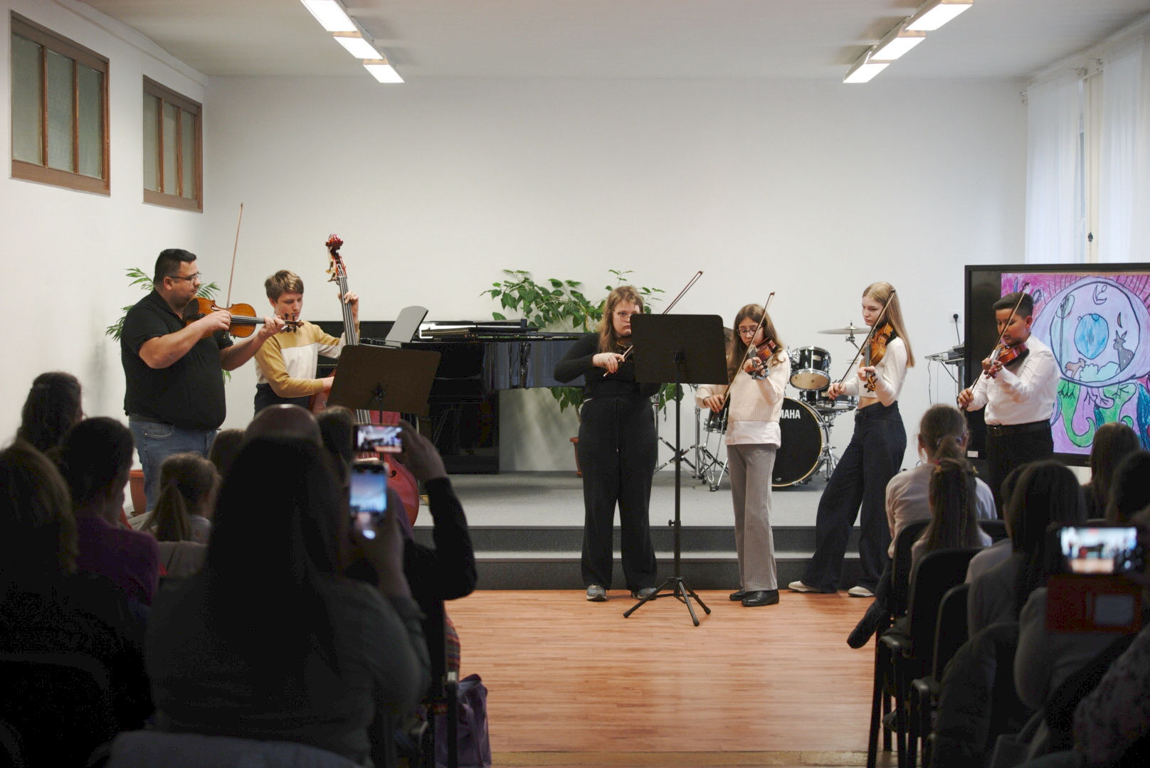 „Úton a zene” címmel interaktív ismeretterjesztő kamarakoncerten vehettek részt 2025. november 5-én iskolánk tanulói, melyen a Nemzeti Filharmonikus Zenekar kiváló művészeiből álló vonósnégyes lépett fel. A rendhagyó énekórán közkedvelt dallamokat, valamint sok érdekességet hallhatunk a tánczene fejlődéséről a barokktól a mai slágerekig.