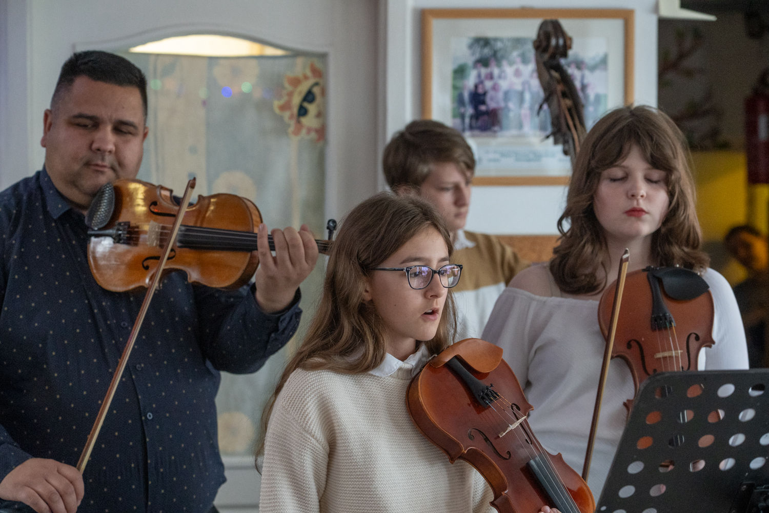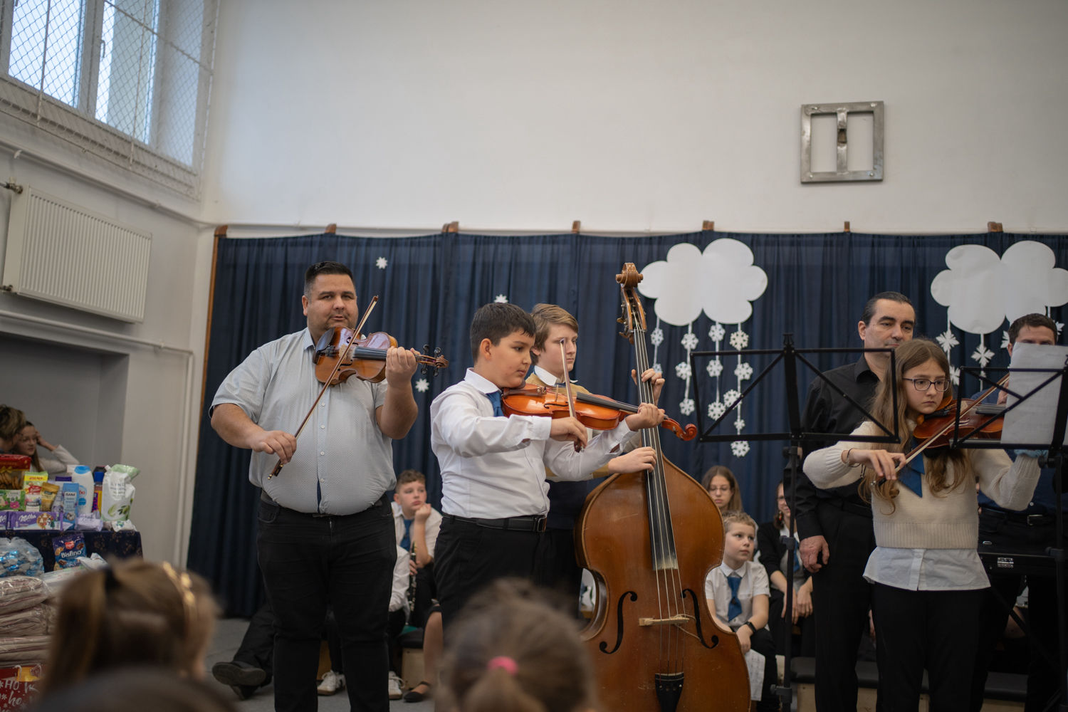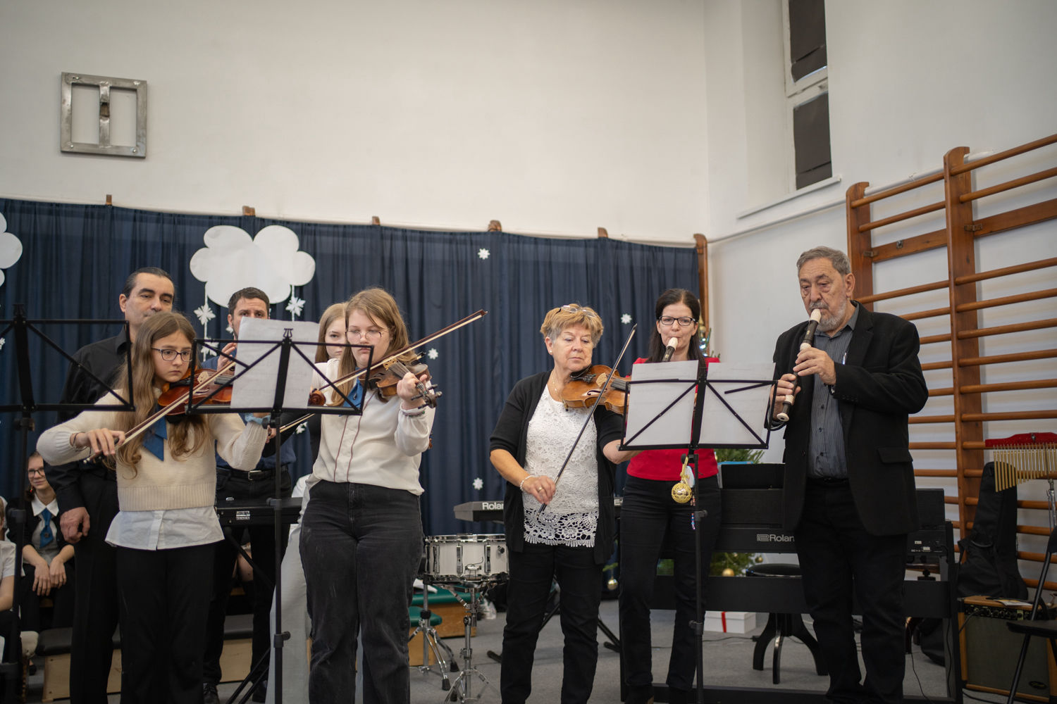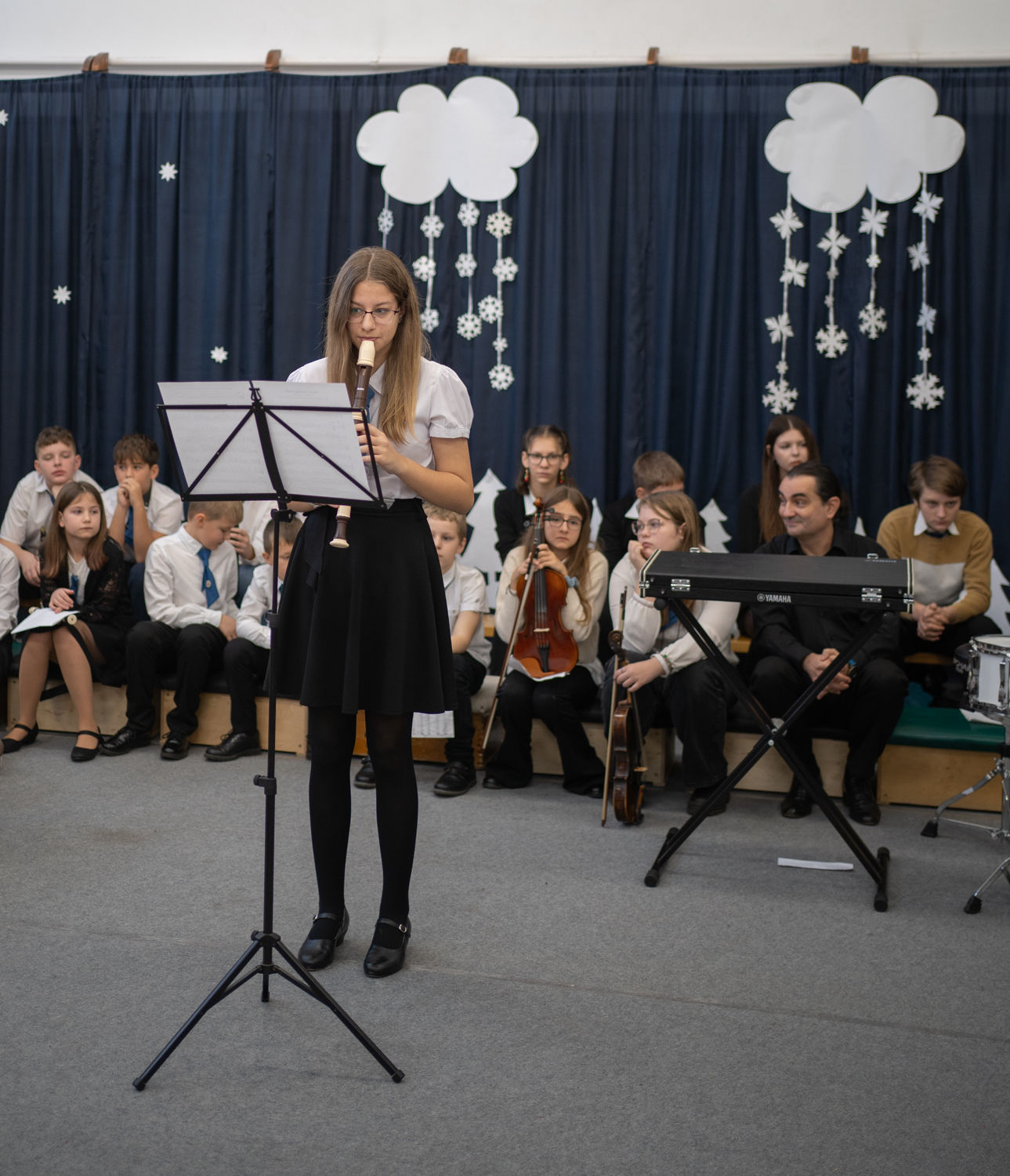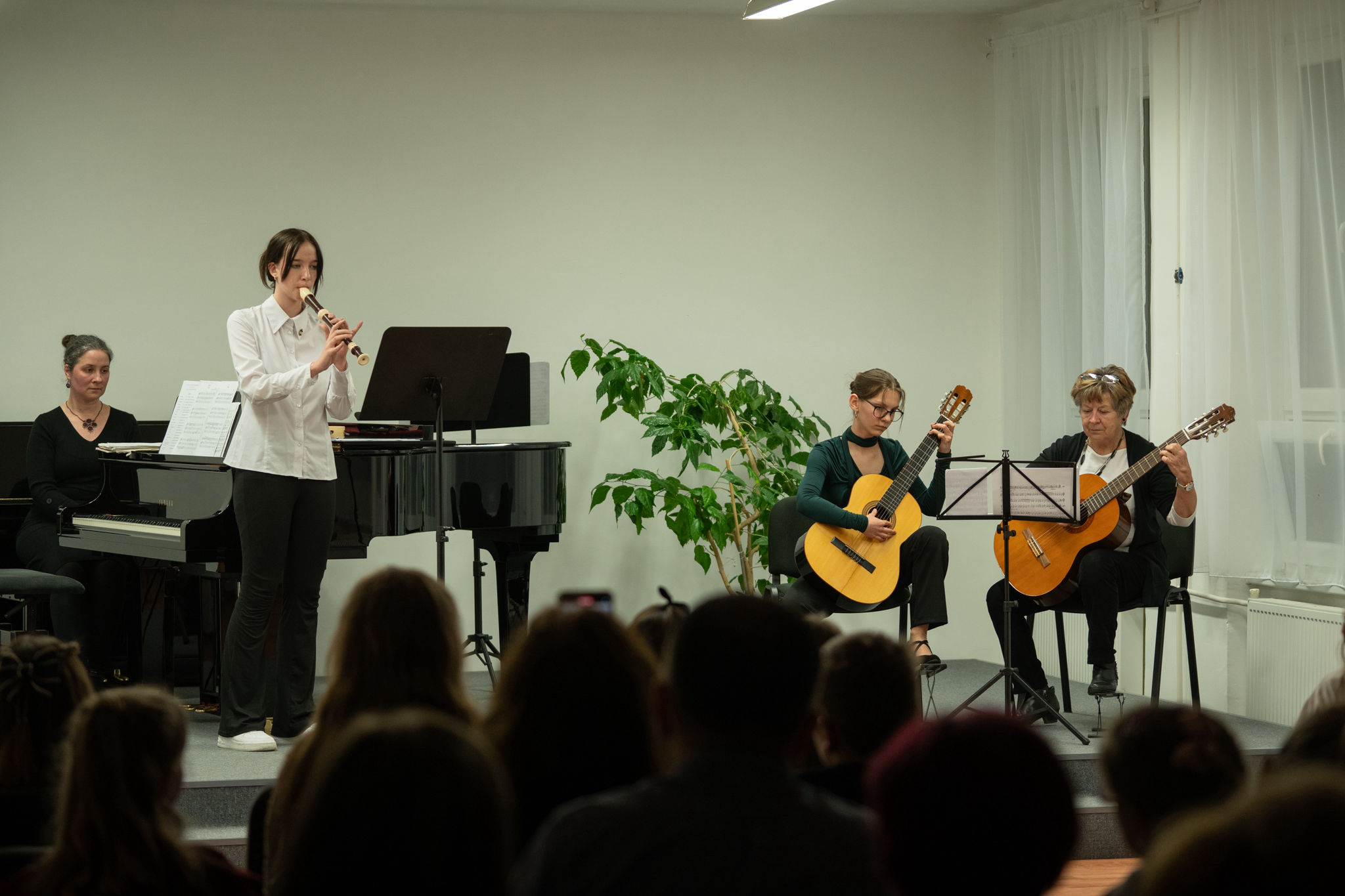 „Úton a zene” címmel interaktív ismeretterjesztő kamarakoncerten vehettek részt 2025. november 5-én iskolánk tanulói, melyen a Nemzeti Filharmonikus Zenekar kiváló művészeiből álló vonósnégyes lépett fel. A rendhagyó énekórán közkedvelt dallamokat, valamint sok érdekességet hallhatunk a tánczene fejlődéséről a barokktól a mai slágerekig.