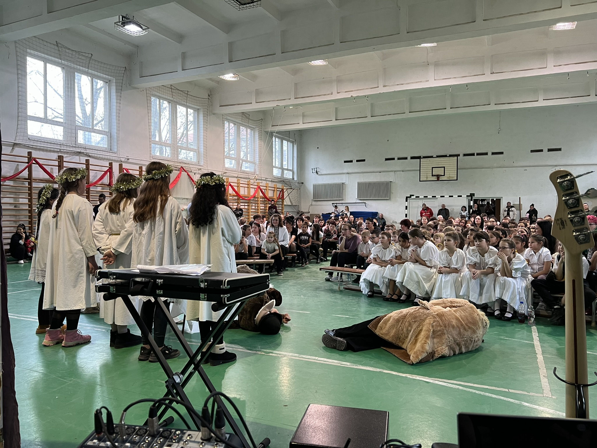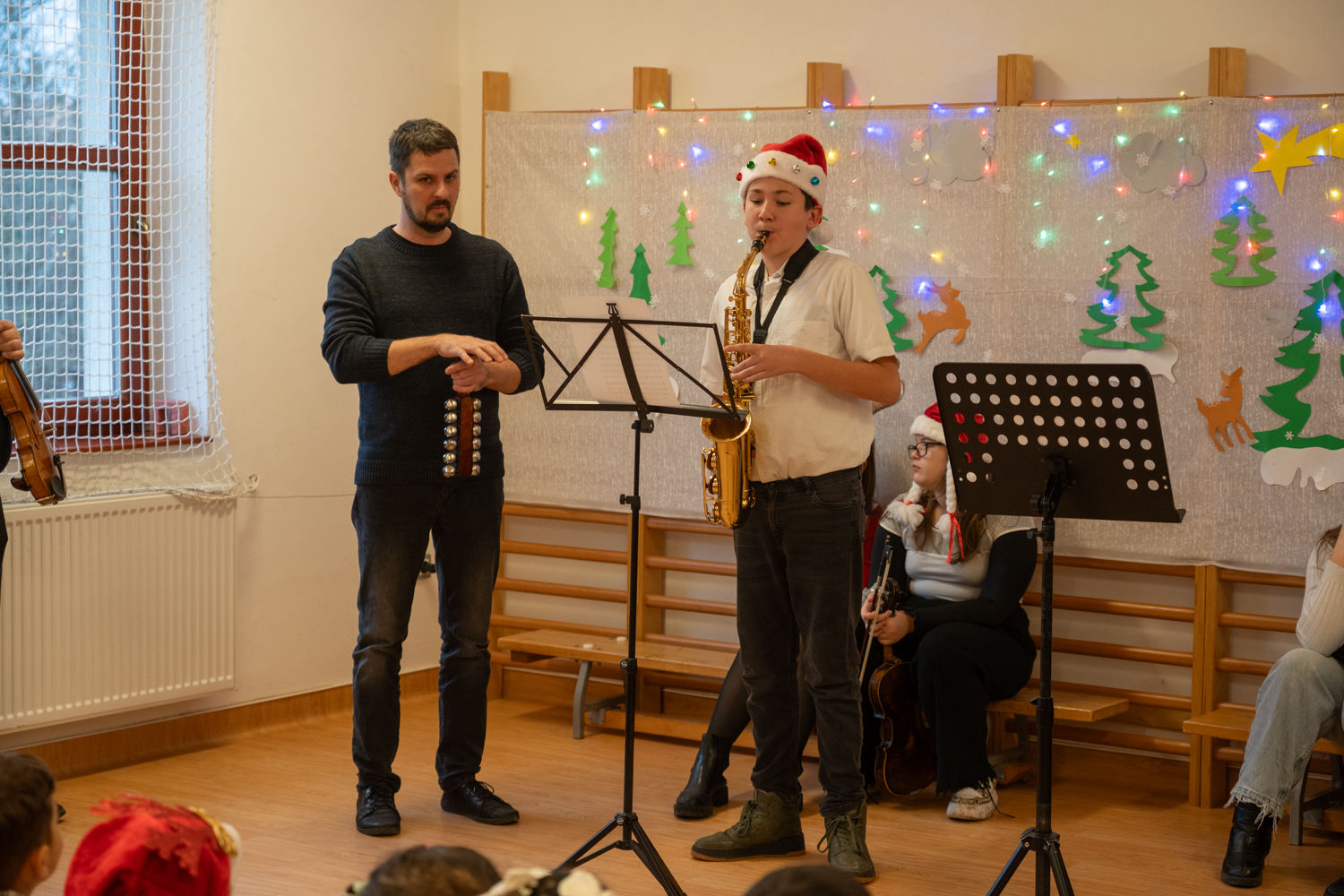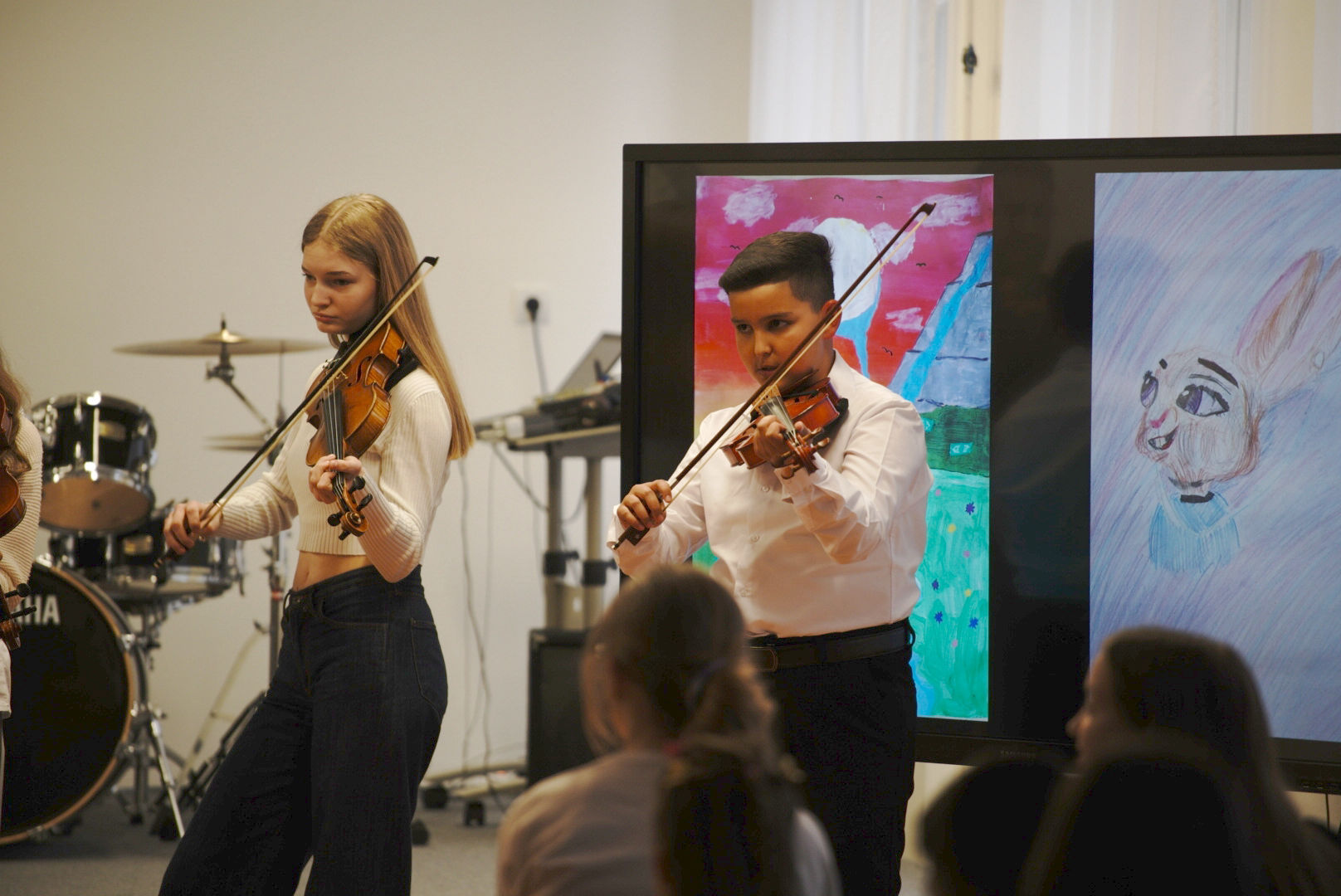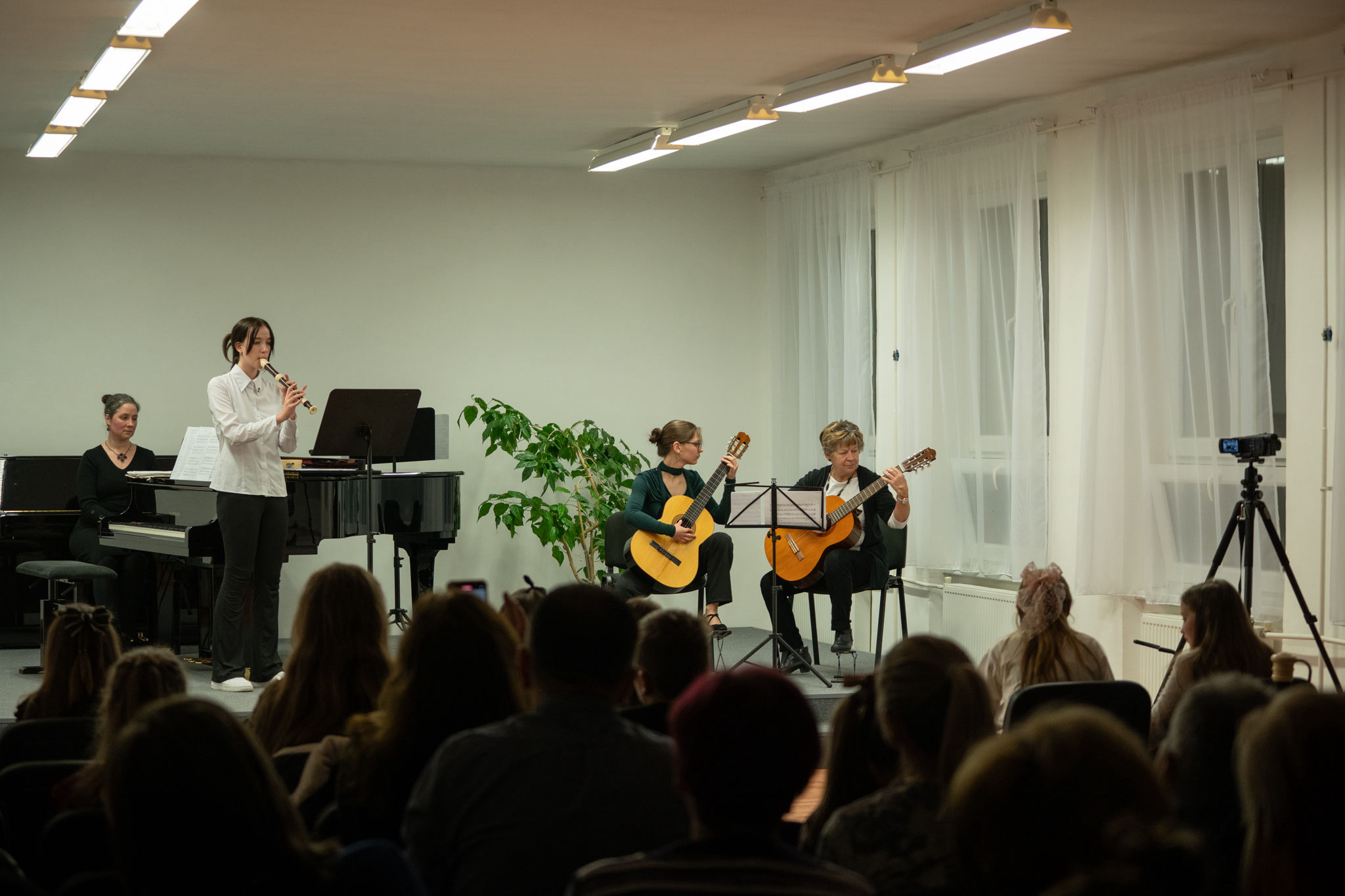 „Úton a zene” címmel interaktív ismeretterjesztő kamarakoncerten vehettek részt 2025. november 5-én iskolánk tanulói, melyen a Nemzeti Filharmonikus Zenekar kiváló művészeiből álló vonósnégyes lépett fel. A rendhagyó énekórán közkedvelt dallamokat, valamint sok érdekességet hallhatunk a tánczene fejlődéséről a barokktól a mai slágerekig.