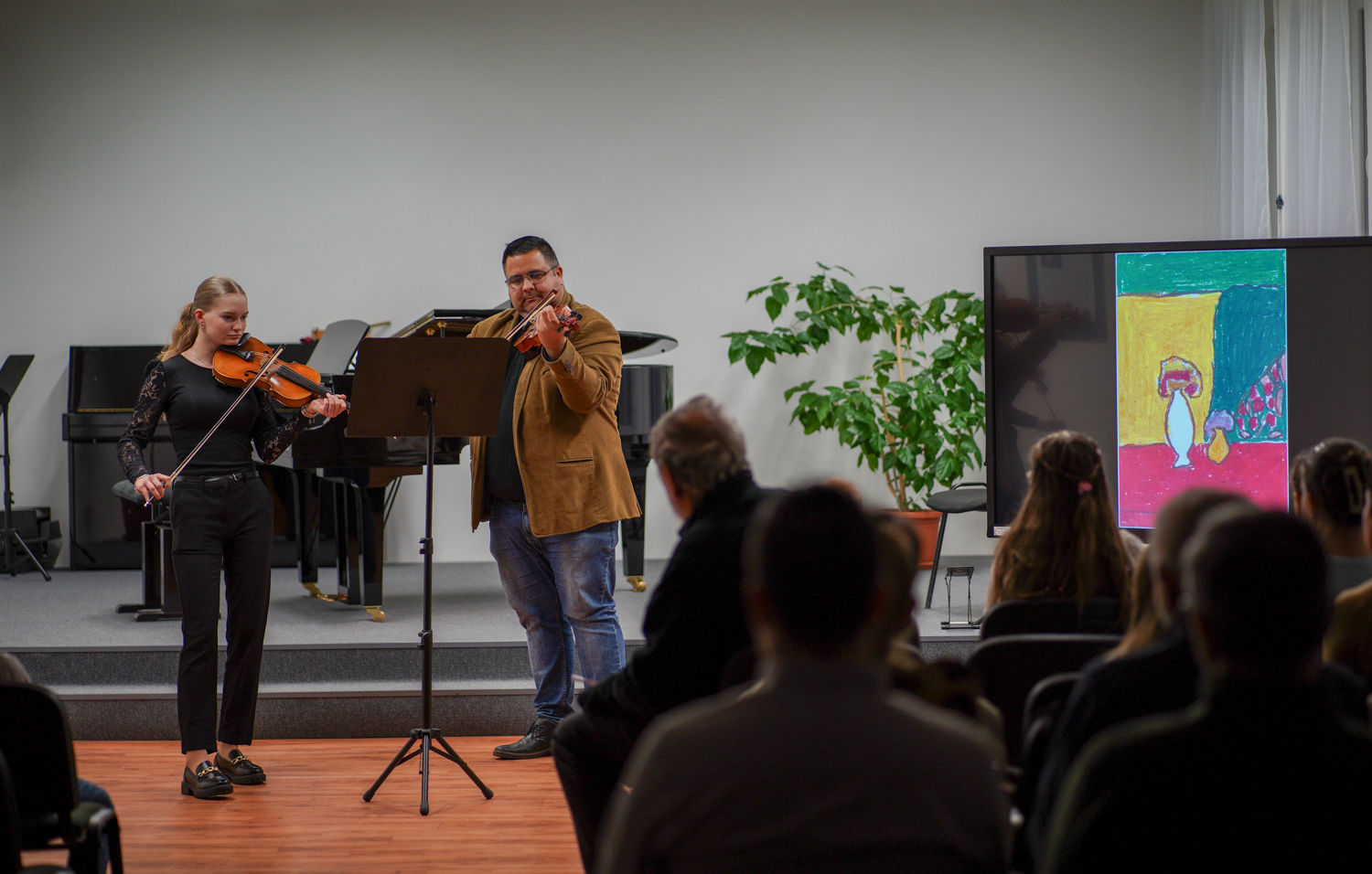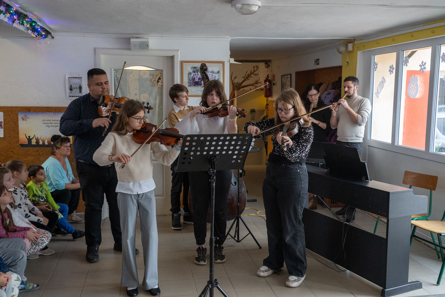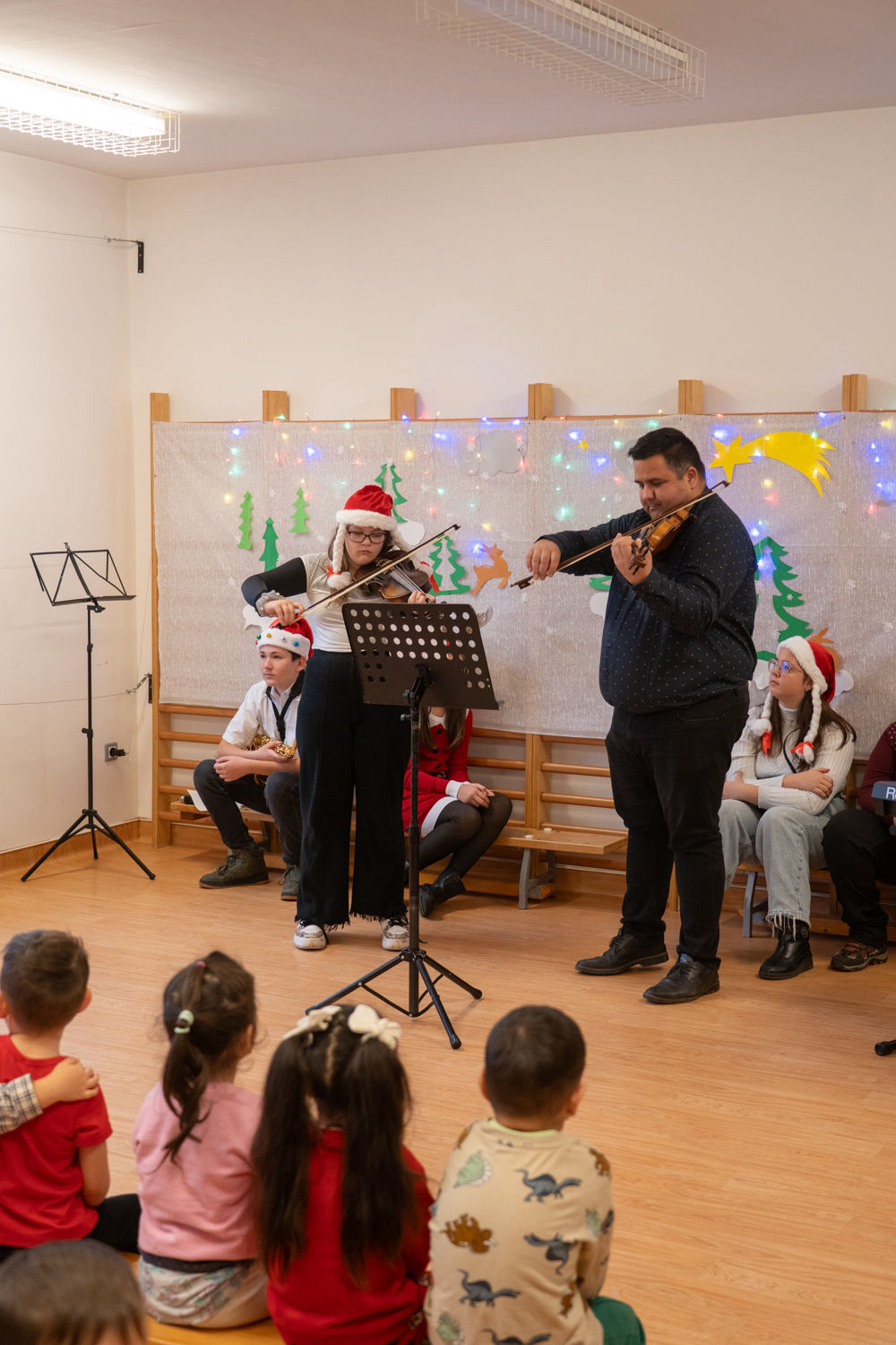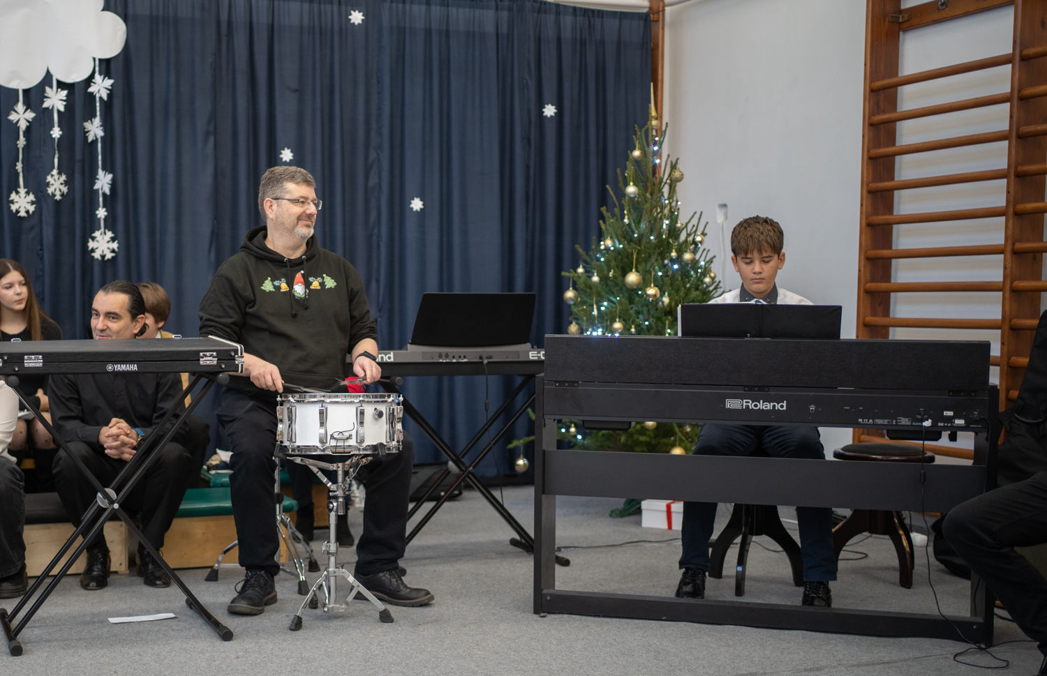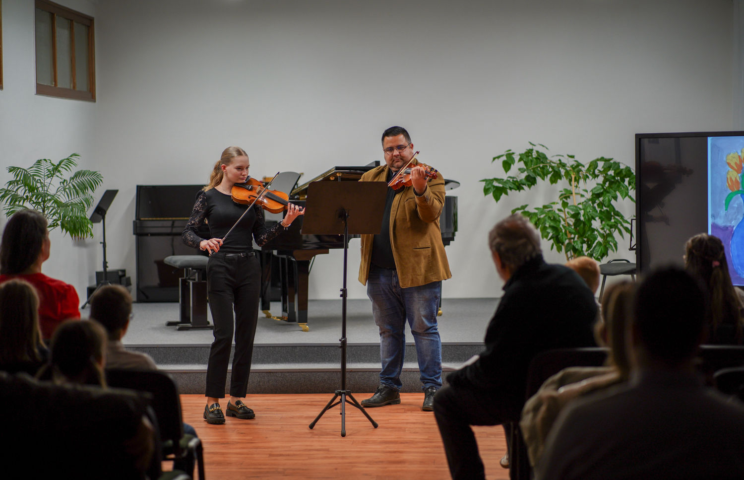 „Úton a zene” címmel interaktív ismeretterjesztő kamarakoncerten vehettek részt 2025. november 5-én iskolánk tanulói, melyen a Nemzeti Filharmonikus Zenekar kiváló művészeiből álló vonósnégyes lépett fel. A rendhagyó énekórán közkedvelt dallamokat, valamint sok érdekességet hallhatunk a tánczene fejlődéséről a barokktól a mai slágerekig.