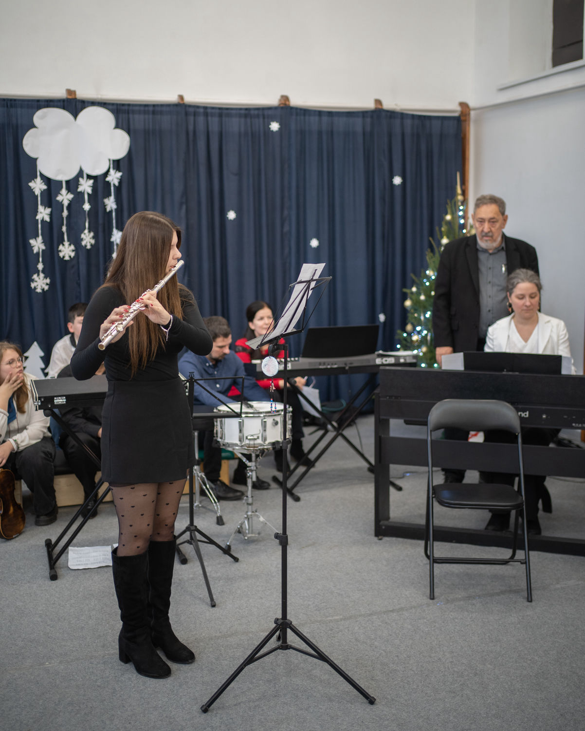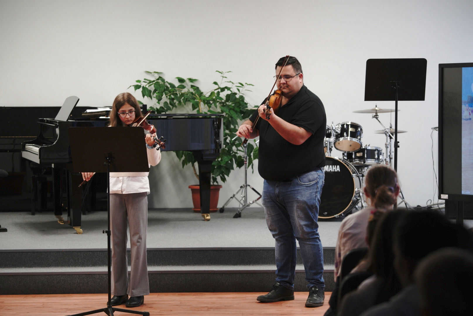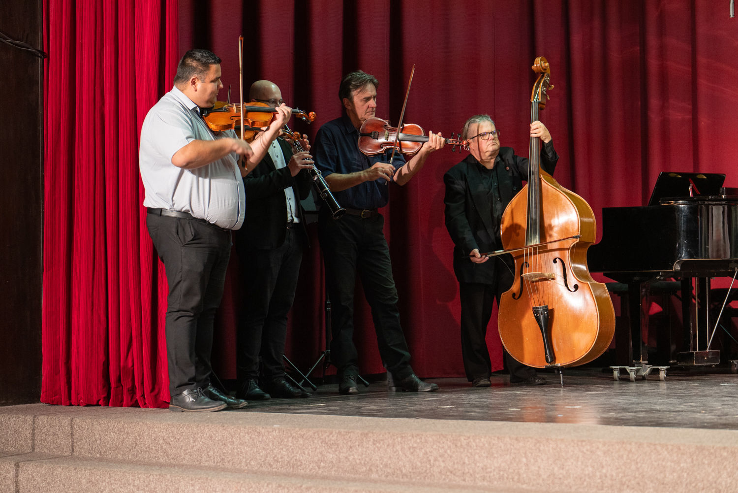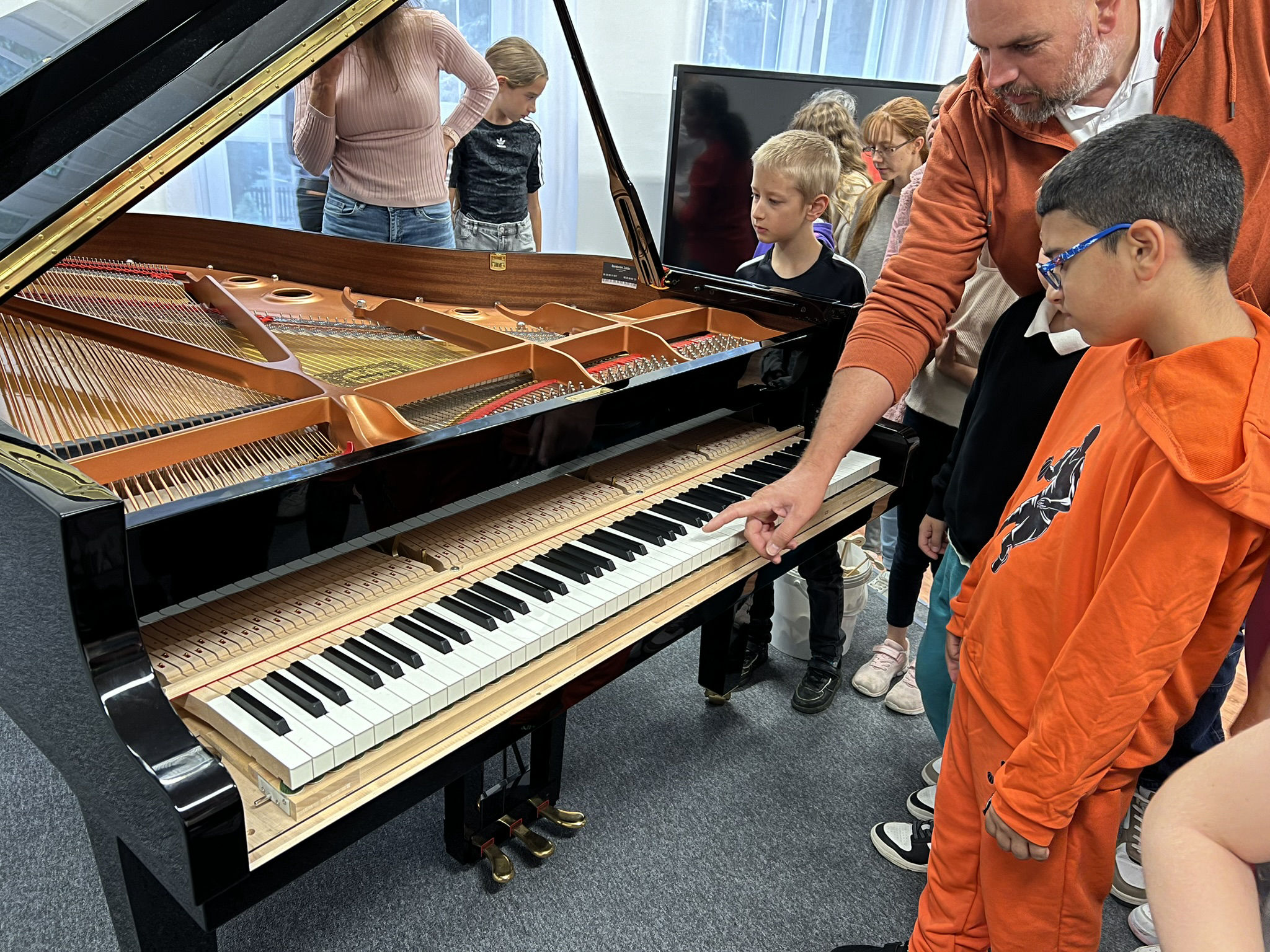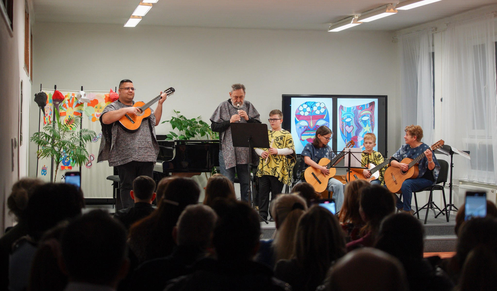 „Úton a zene” címmel interaktív ismeretterjesztő kamarakoncerten vehettek részt 2025. november 5-én iskolánk tanulói, melyen a Nemzeti Filharmonikus Zenekar kiváló művészeiből álló vonósnégyes lépett fel. A rendhagyó énekórán közkedvelt dallamokat, valamint sok érdekességet hallhatunk a tánczene fejlődéséről a barokktól a mai slágerekig.