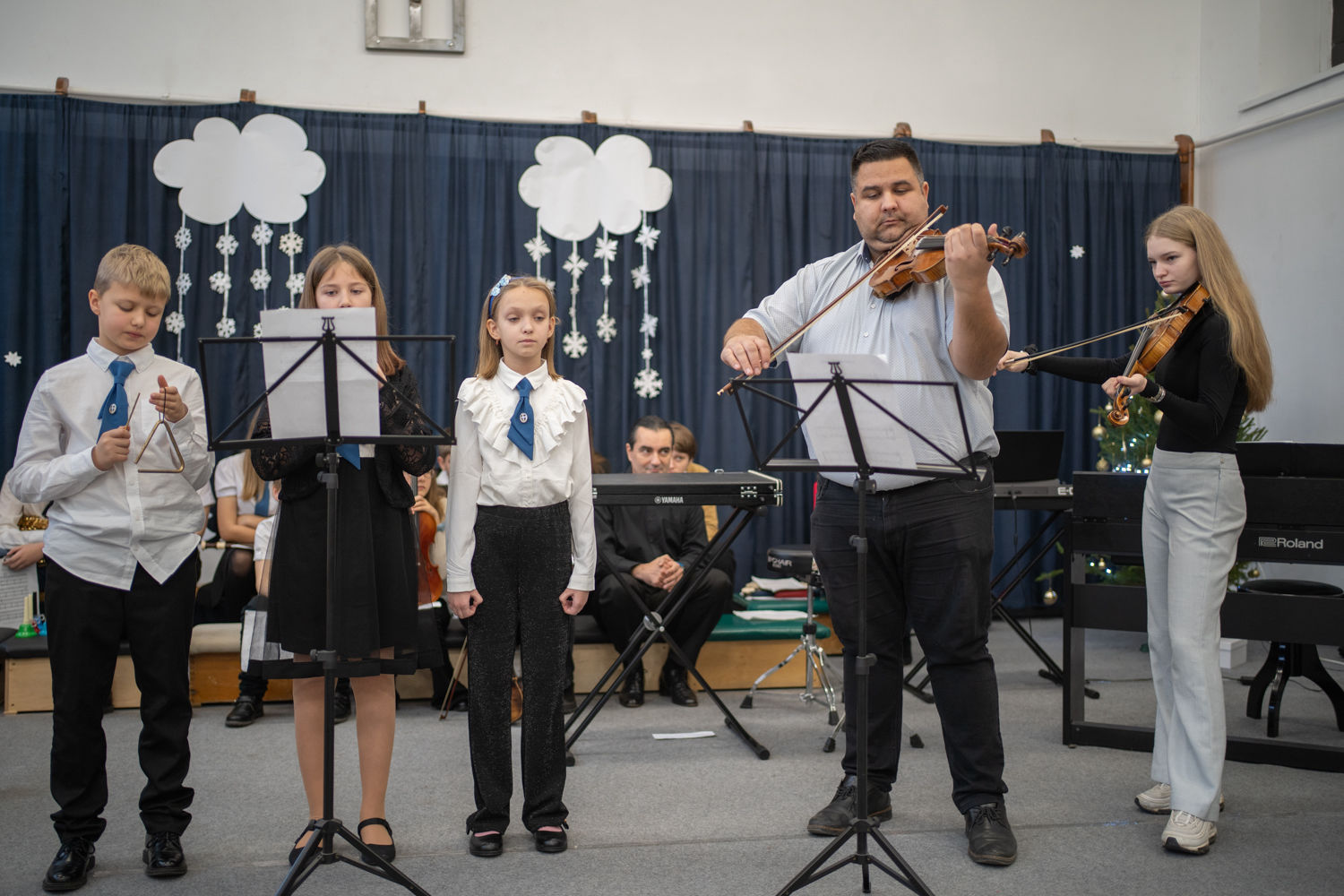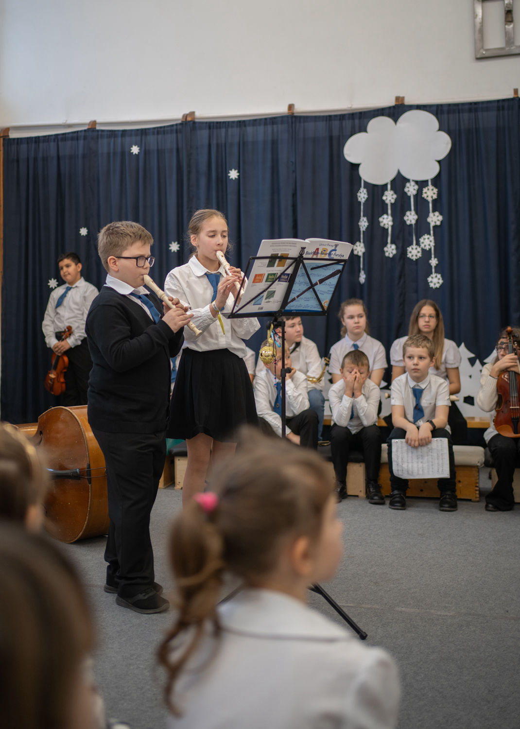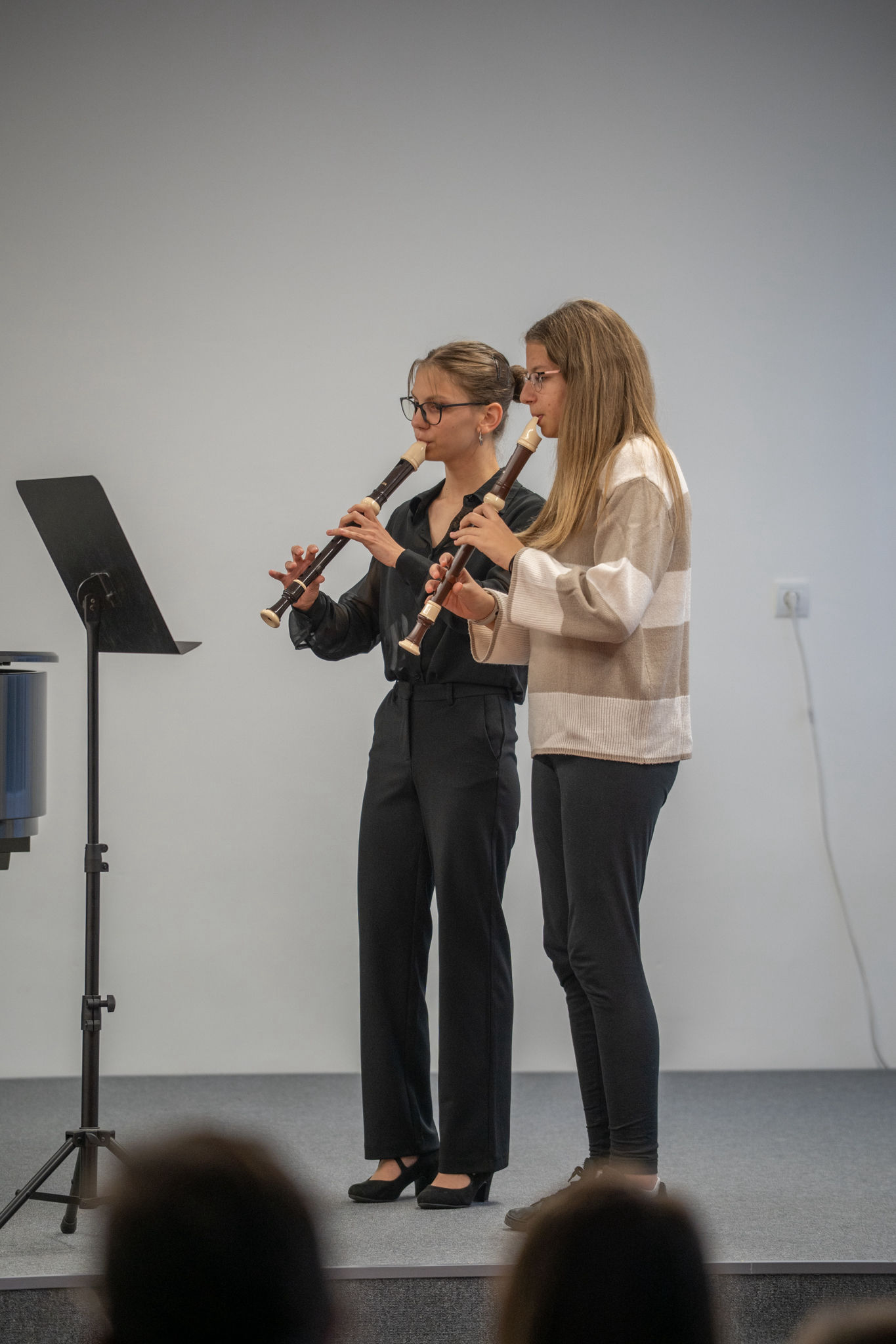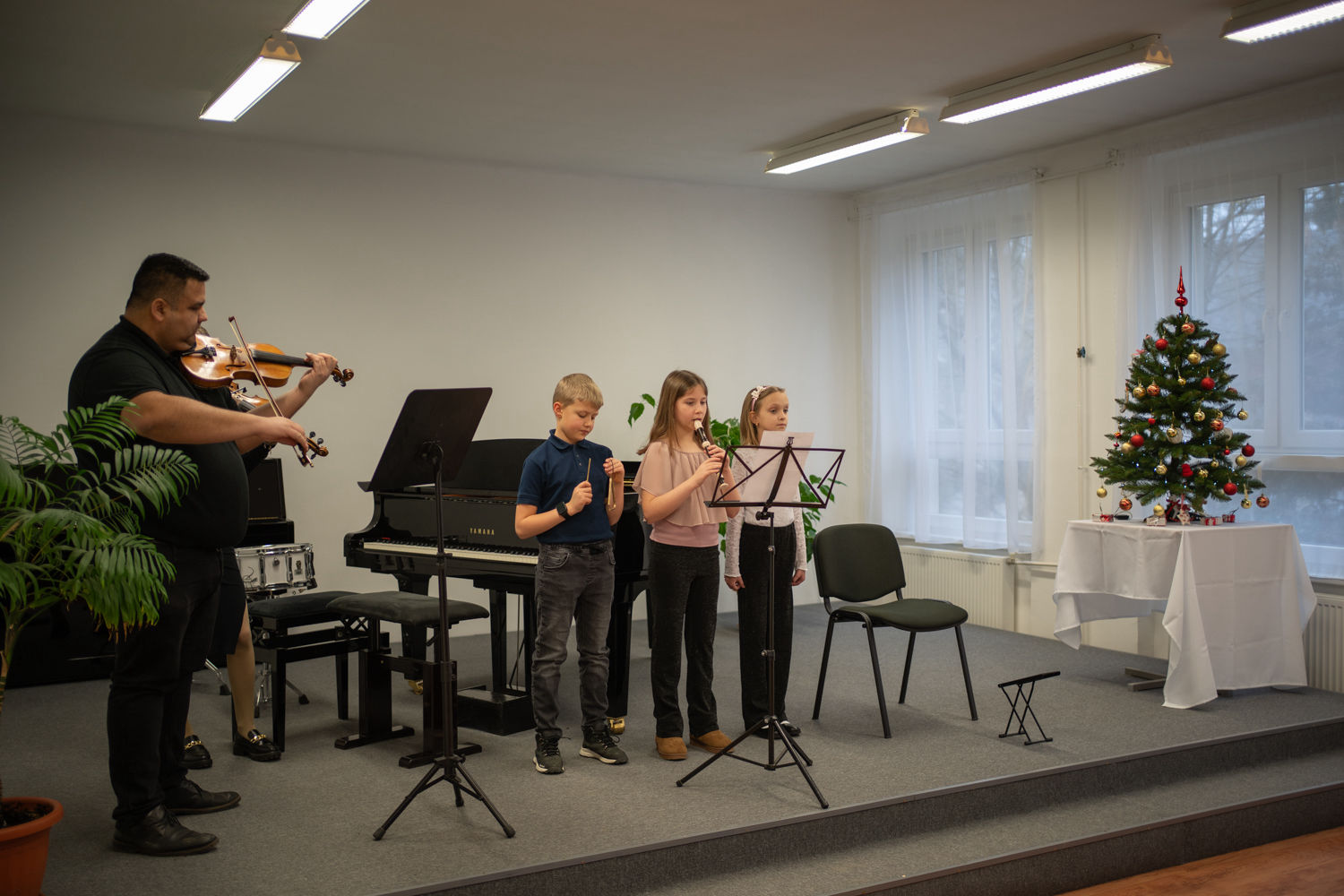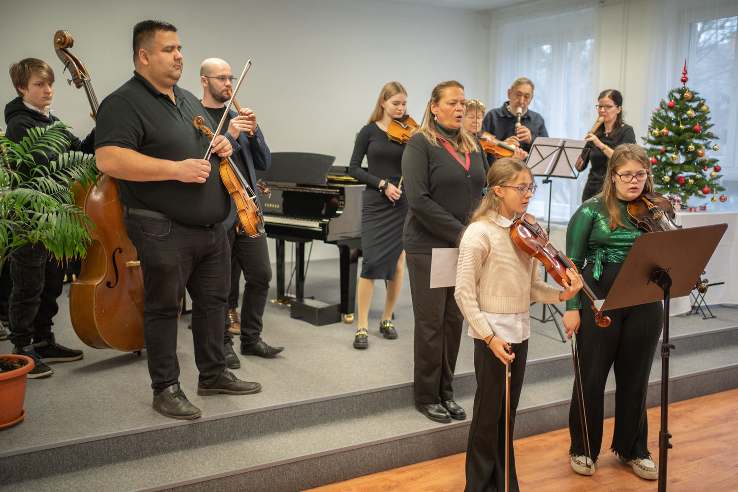 „Úton a zene” címmel interaktív ismeretterjesztő kamarakoncerten vehettek részt 2025. november 5-én iskolánk tanulói, melyen a Nemzeti Filharmonikus Zenekar kiváló művészeiből álló vonósnégyes lépett fel. A rendhagyó énekórán közkedvelt dallamokat, valamint sok érdekességet hallhatunk a tánczene fejlődéséről a barokktól a mai slágerekig.