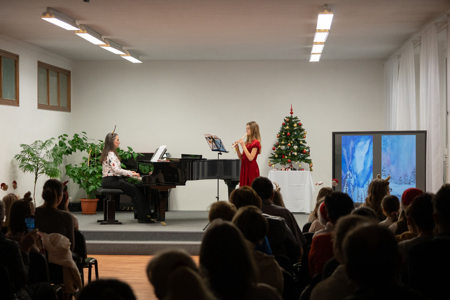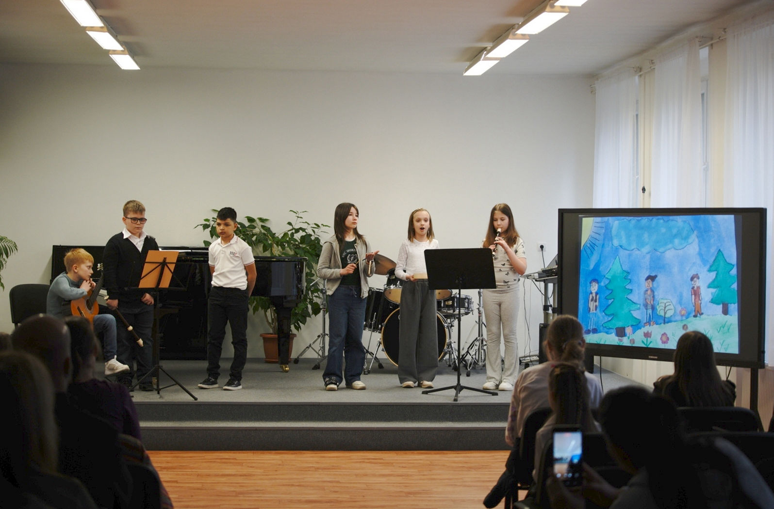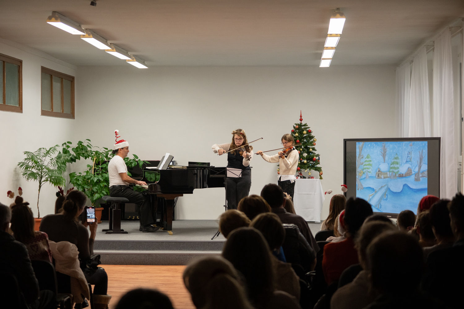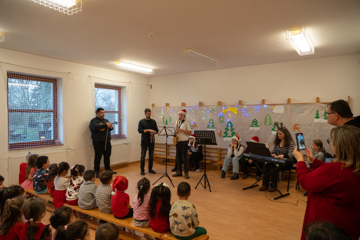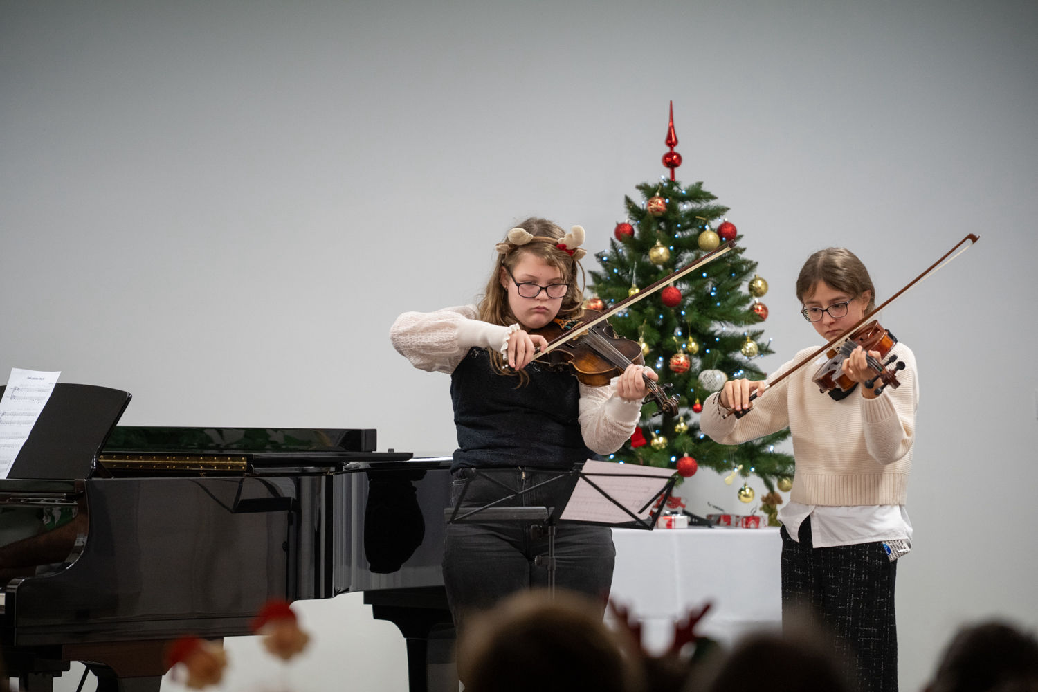 „Úton a zene” címmel interaktív ismeretterjesztő kamarakoncerten vehettek részt 2025. november 5-én iskolánk tanulói, melyen a Nemzeti Filharmonikus Zenekar kiváló művészeiből álló vonósnégyes lépett fel. A rendhagyó énekórán közkedvelt dallamokat, valamint sok érdekességet hallhatunk a tánczene fejlődéséről a barokktól a mai slágerekig.