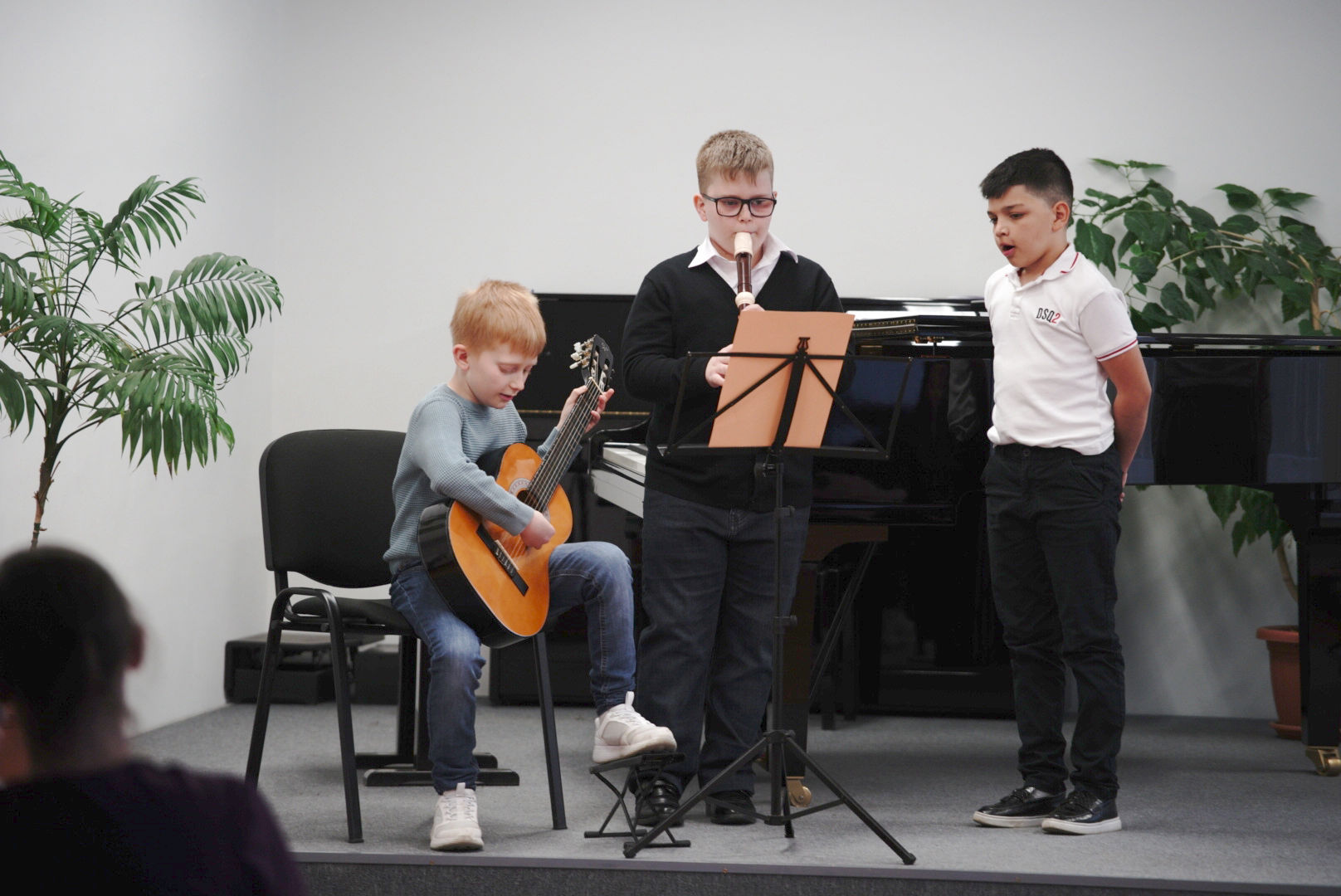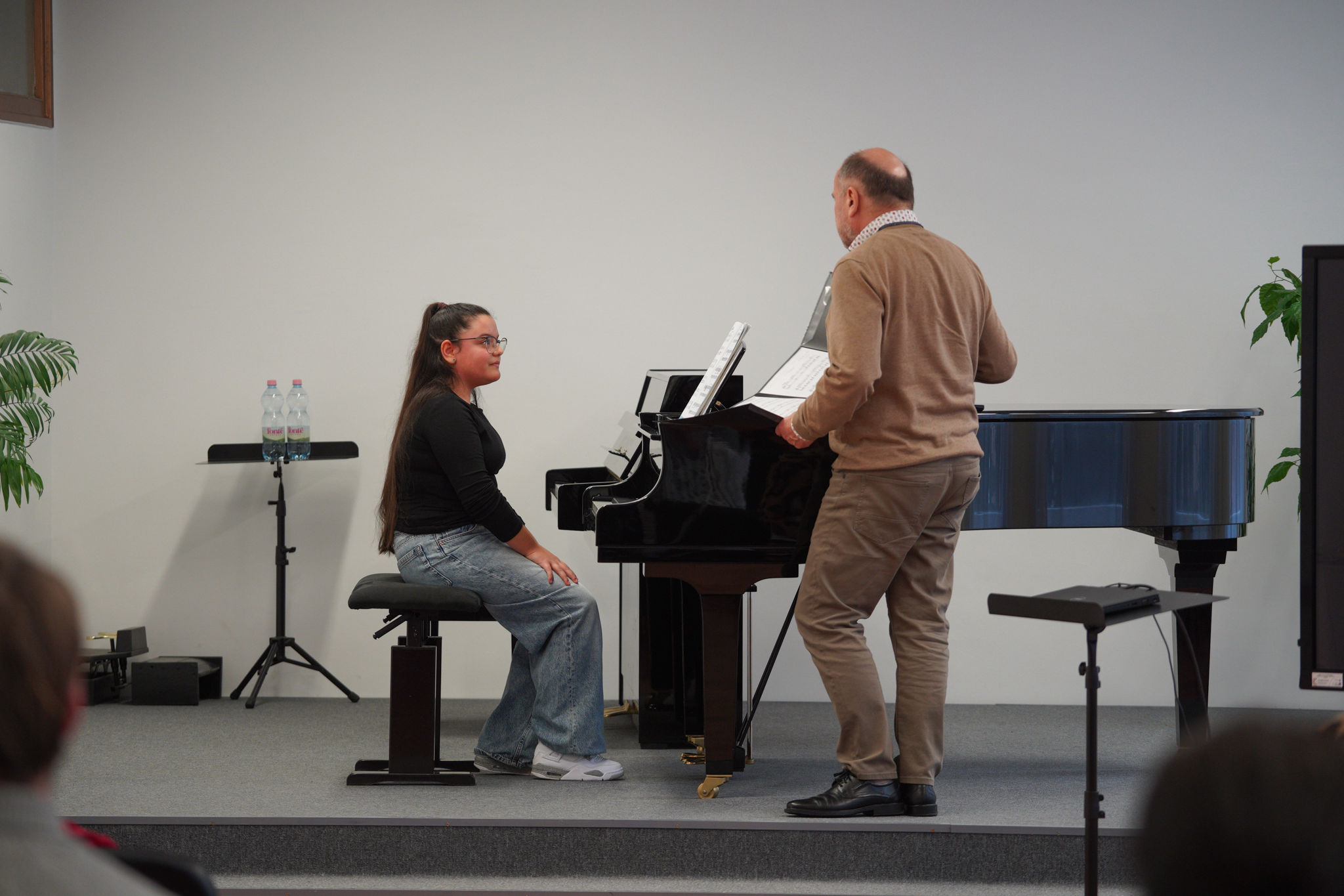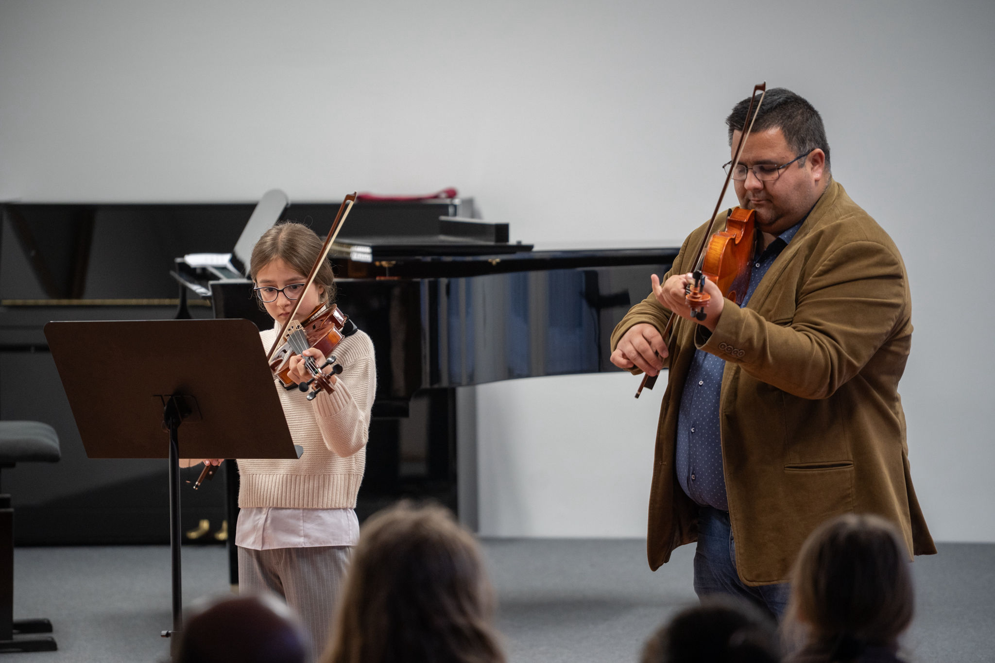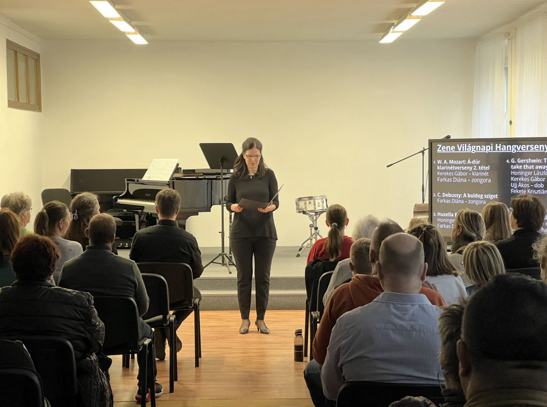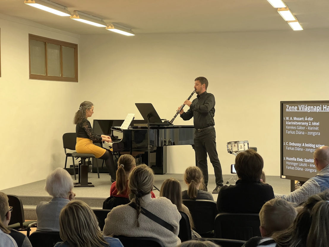 „Úton a zene” címmel interaktív ismeretterjesztő kamarakoncerten vehettek részt 2025. november 5-én iskolánk tanulói, melyen a Nemzeti Filharmonikus Zenekar kiváló művészeiből álló vonósnégyes lépett fel. A rendhagyó énekórán közkedvelt dallamokat, valamint sok érdekességet hallhatunk a tánczene fejlődéséről a barokktól a mai slágerekig.