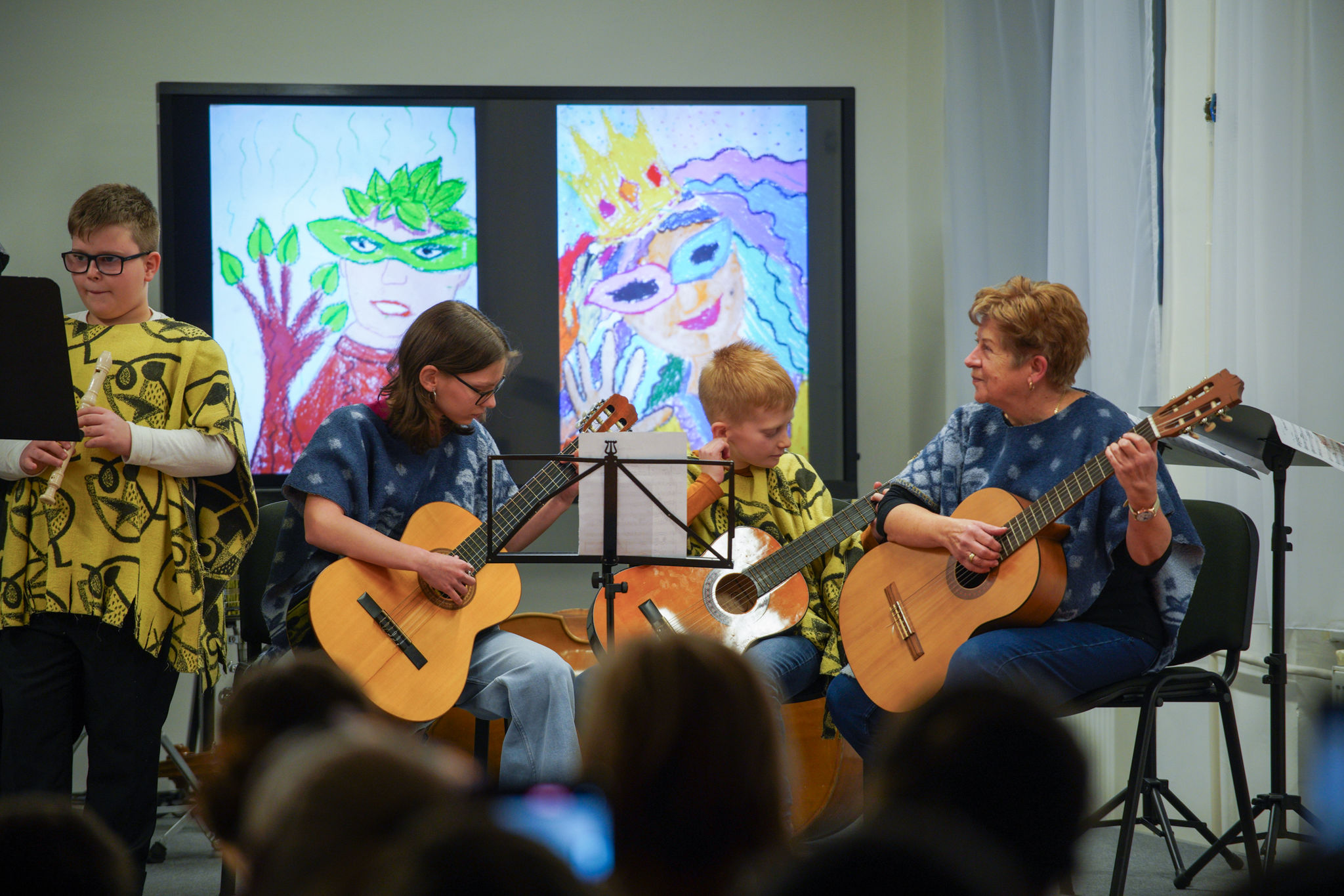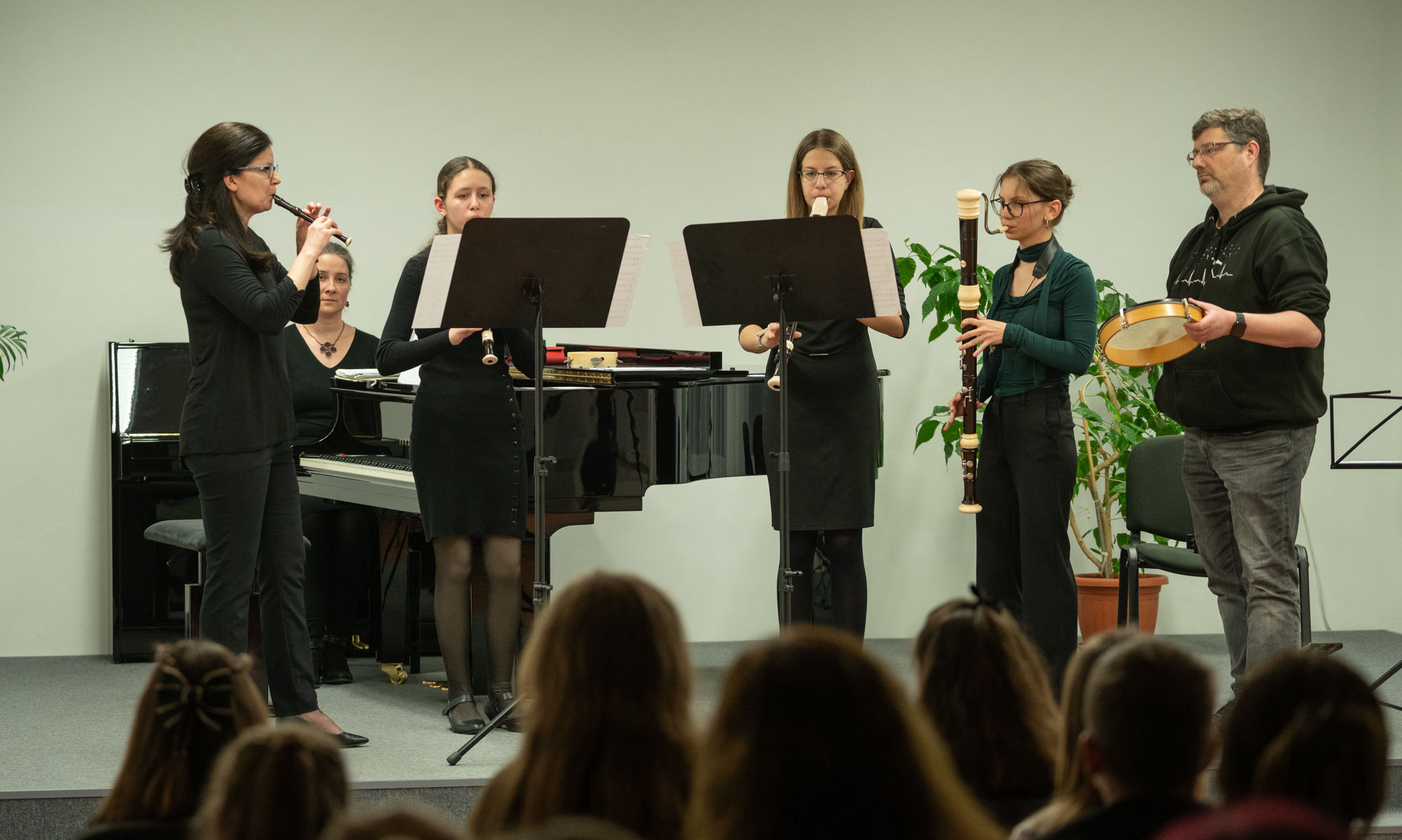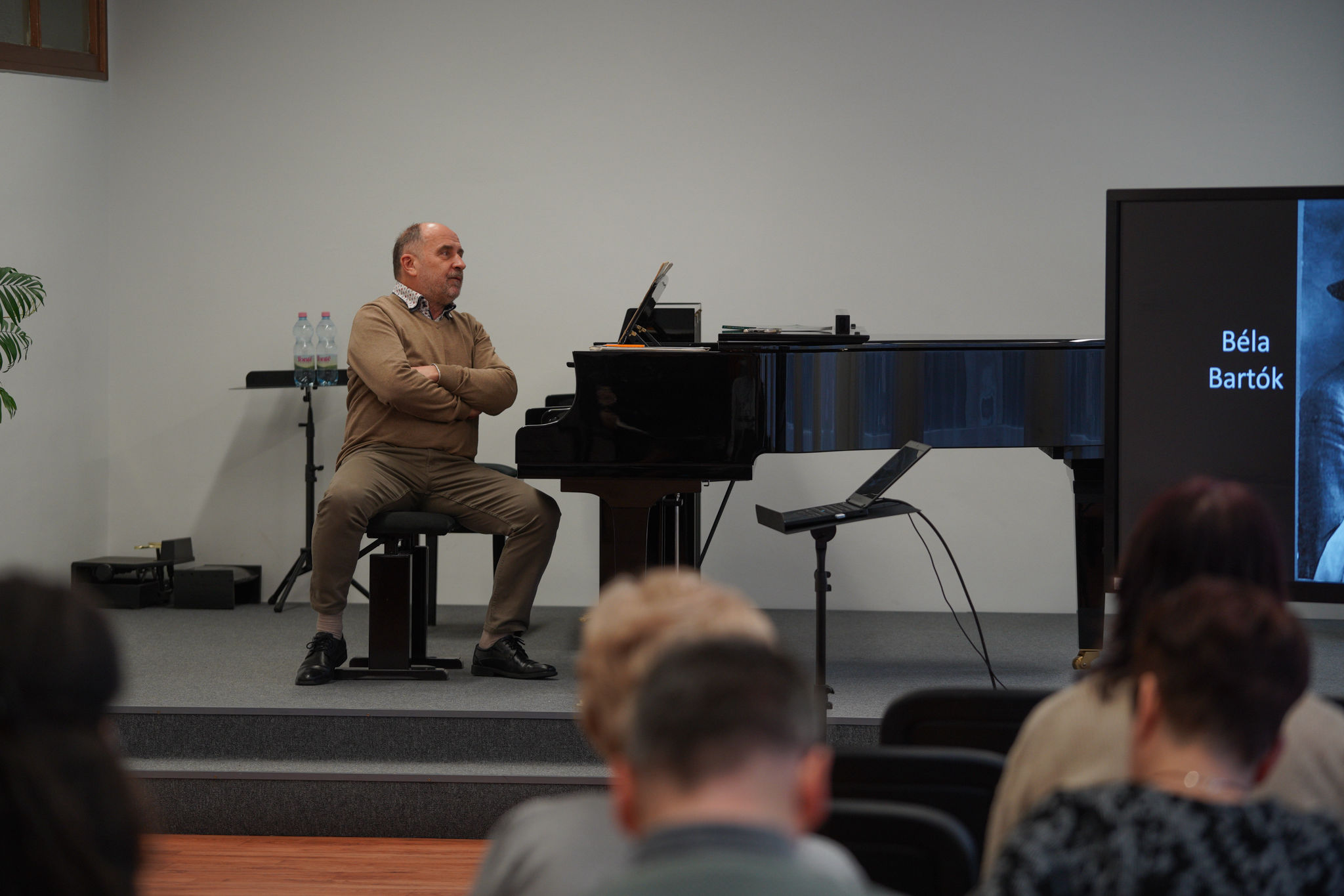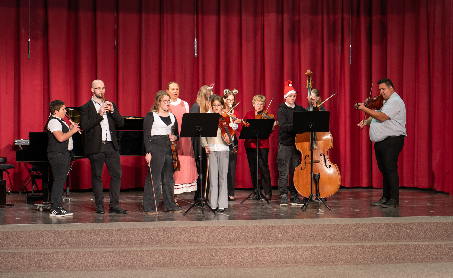 „Úton a zene” címmel interaktív ismeretterjesztő kamarakoncerten vehettek részt 2025. november 5-én iskolánk tanulói, melyen a Nemzeti Filharmonikus Zenekar kiváló művészeiből álló vonósnégyes lépett fel. A rendhagyó énekórán közkedvelt dallamokat, valamint sok érdekességet hallhatunk a tánczene fejlődéséről a barokktól a mai slágerekig.