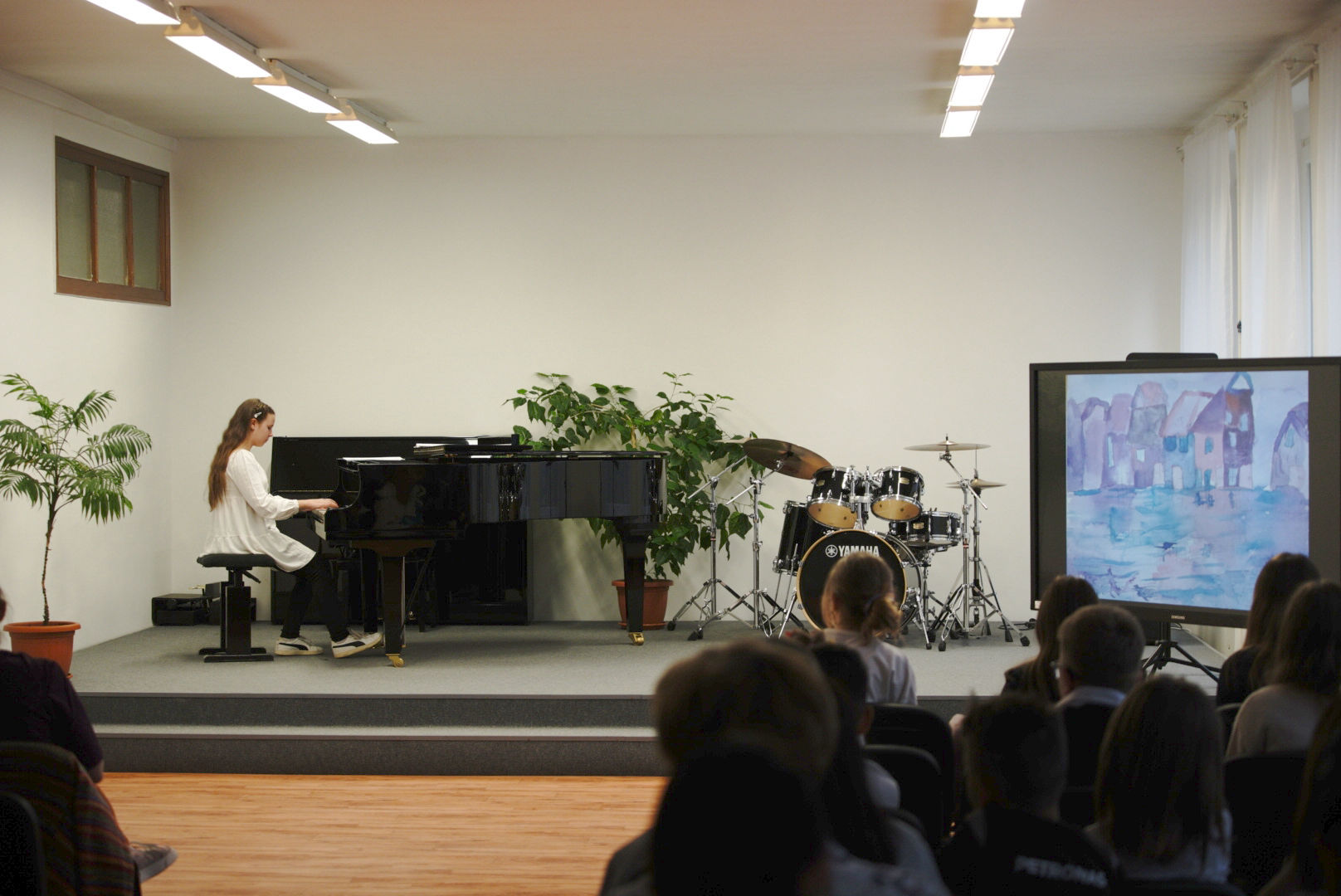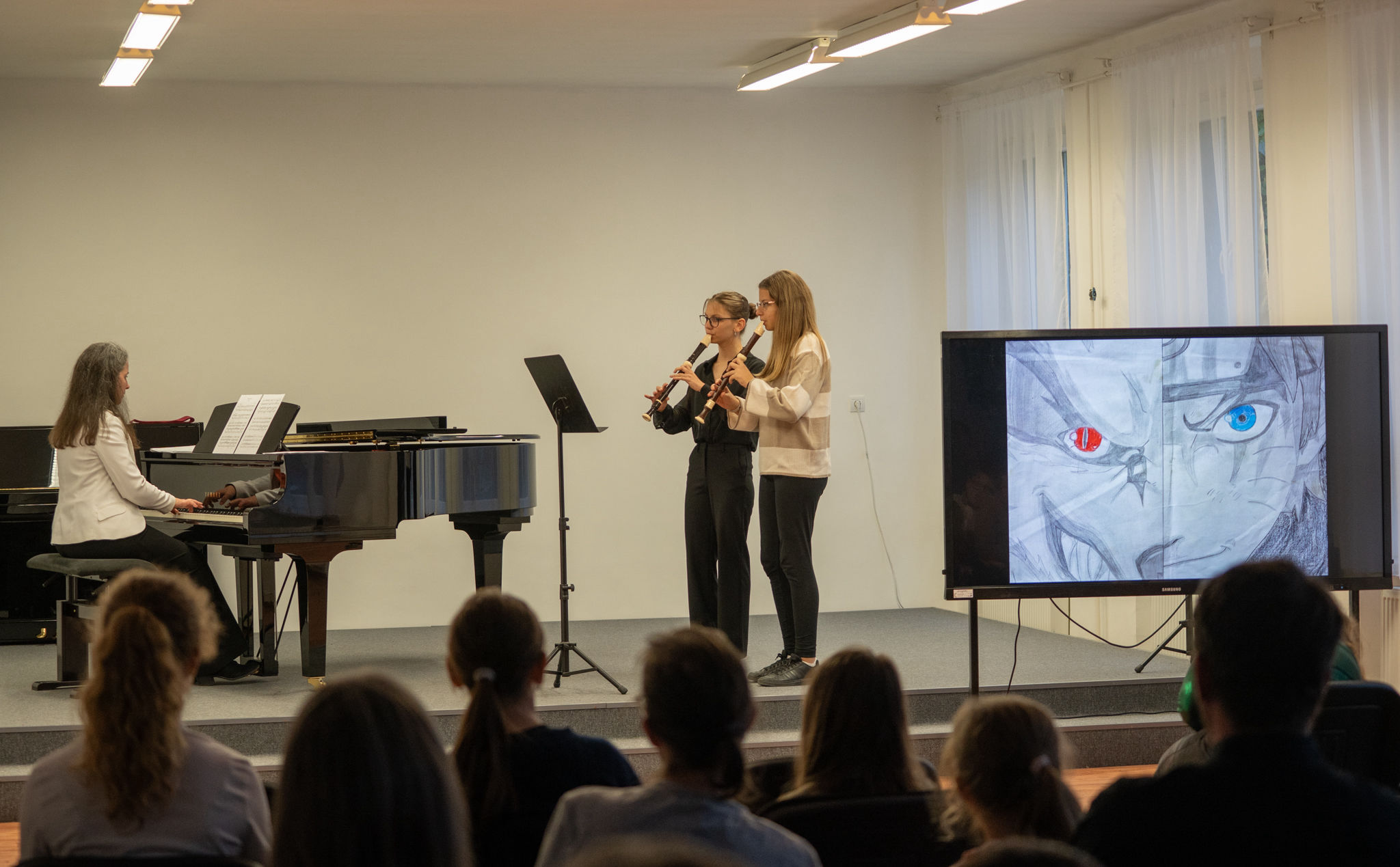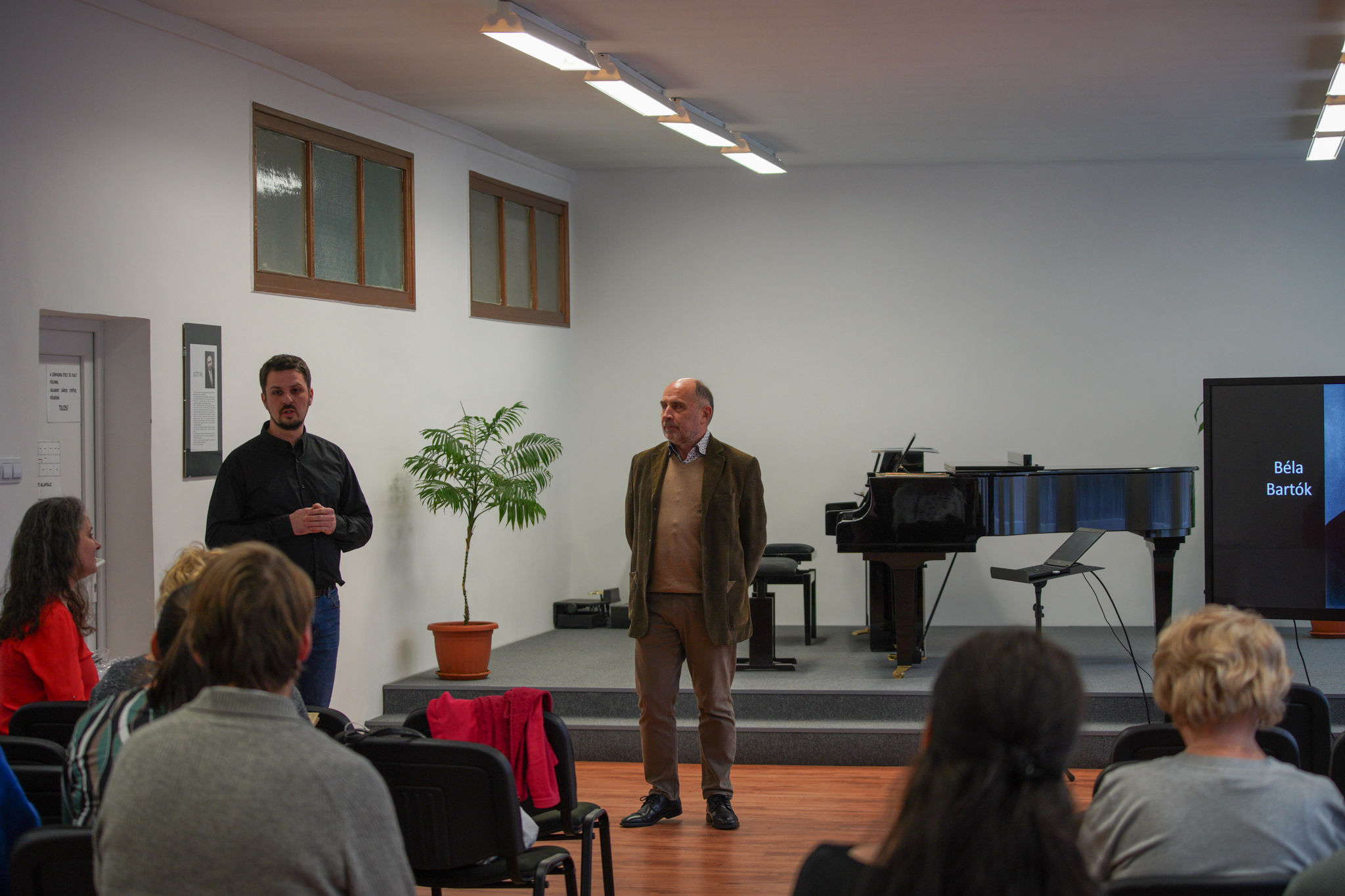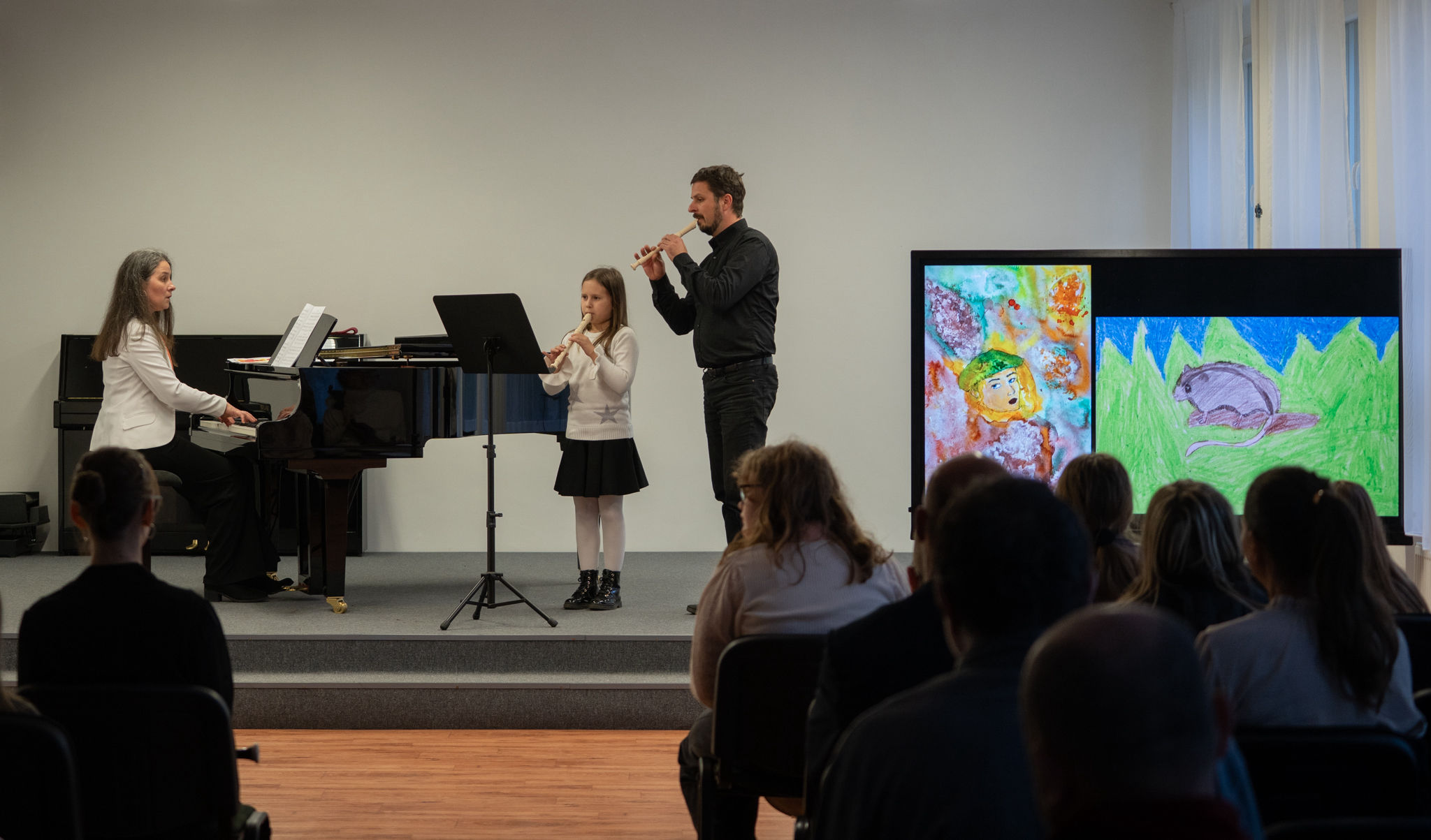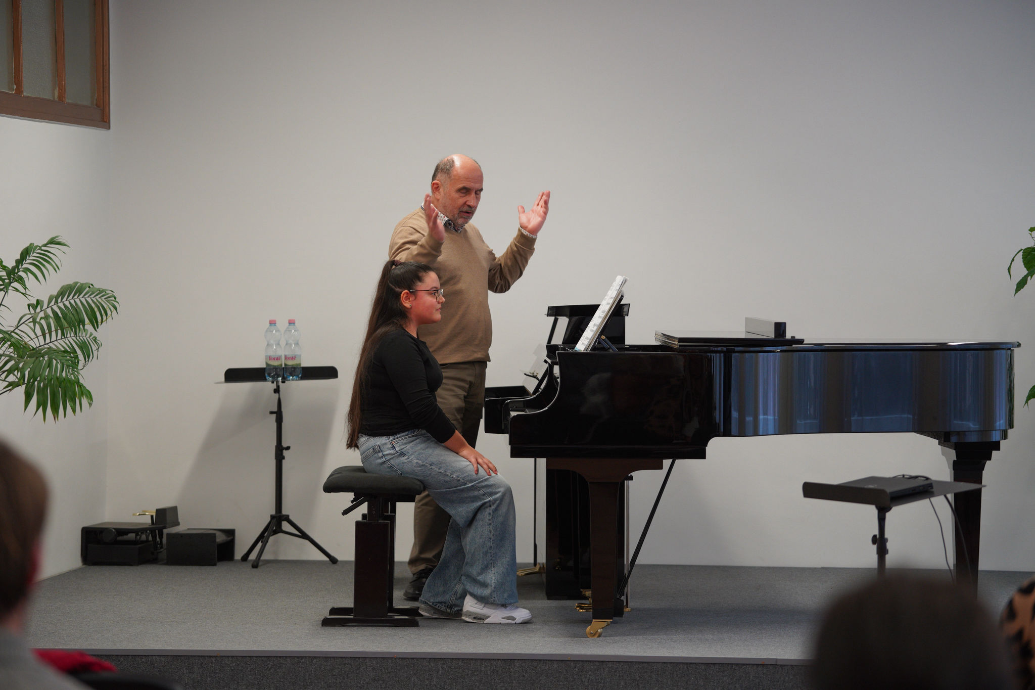 „Úton a zene” címmel interaktív ismeretterjesztő kamarakoncerten vehettek részt 2025. november 5-én iskolánk tanulói, melyen a Nemzeti Filharmonikus Zenekar kiváló művészeiből álló vonósnégyes lépett fel. A rendhagyó énekórán közkedvelt dallamokat, valamint sok érdekességet hallhatunk a tánczene fejlődéséről a barokktól a mai slágerekig.